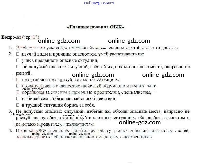 Готовые домашние задания по ОБЖ за 5 класс Учебник Фролов, Шолох 2015 - Страницы 13