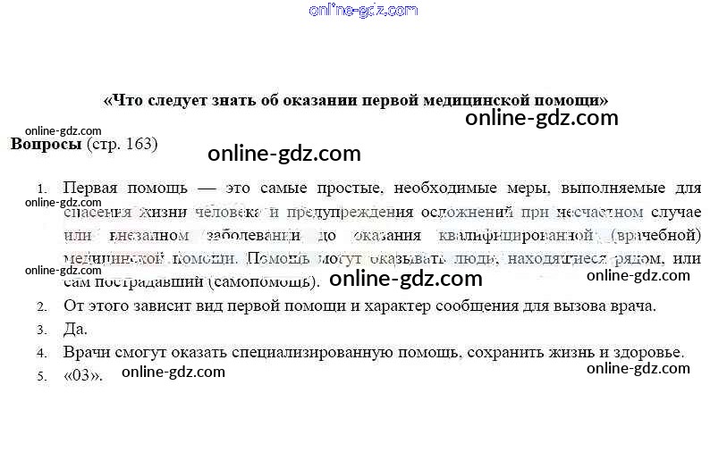 Готовые домашние задания по ОБЖ за 5 класс Учебник Фролов, Шолох 2015 - Страницы 163-164