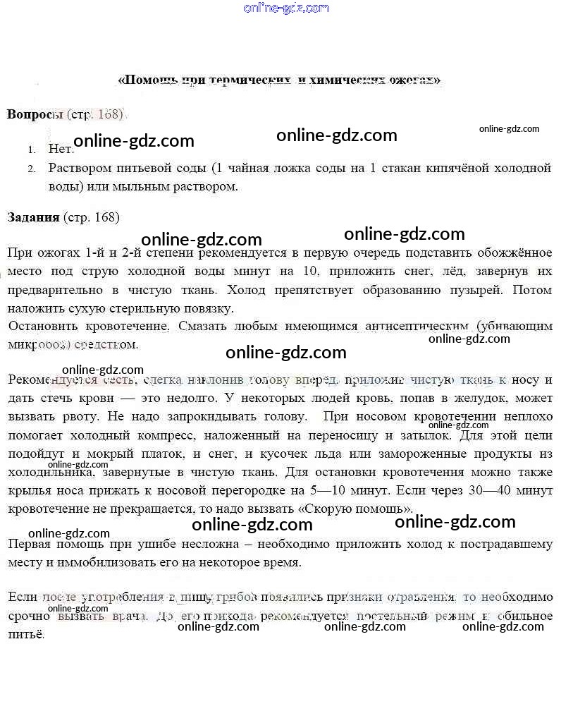 Готовые домашние задания по ОБЖ за 5 класс Учебник Фролов, Шолох 2015 - Страницы 168