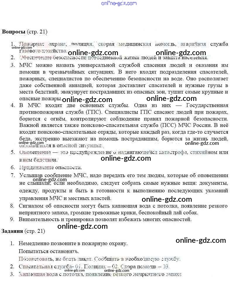 Готовые домашние задания по ОБЖ за 5 класс Учебник Фролов, Шолох 2015 - Страницы 21