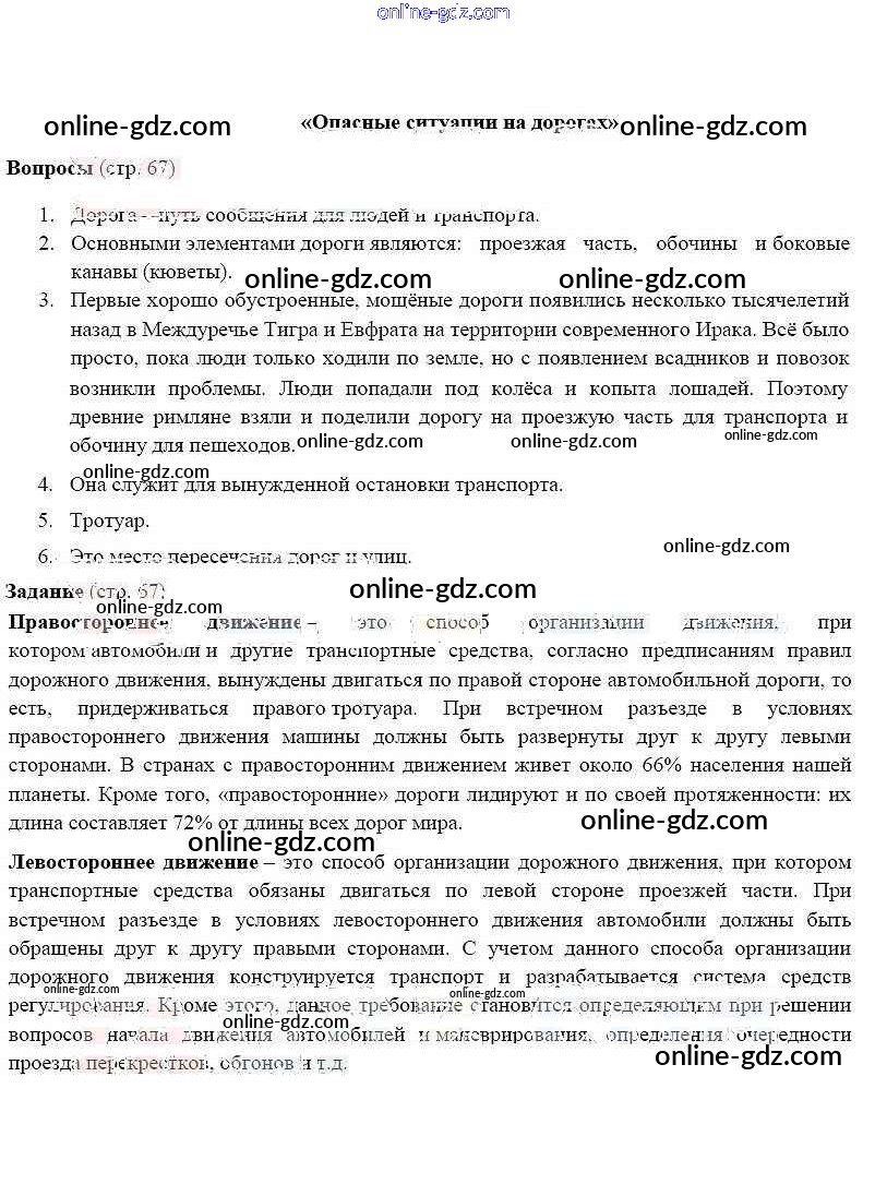 Готовые домашние задания по ОБЖ за 5 класс Учебник Фролов, Шолох 2015 - Страницы 67