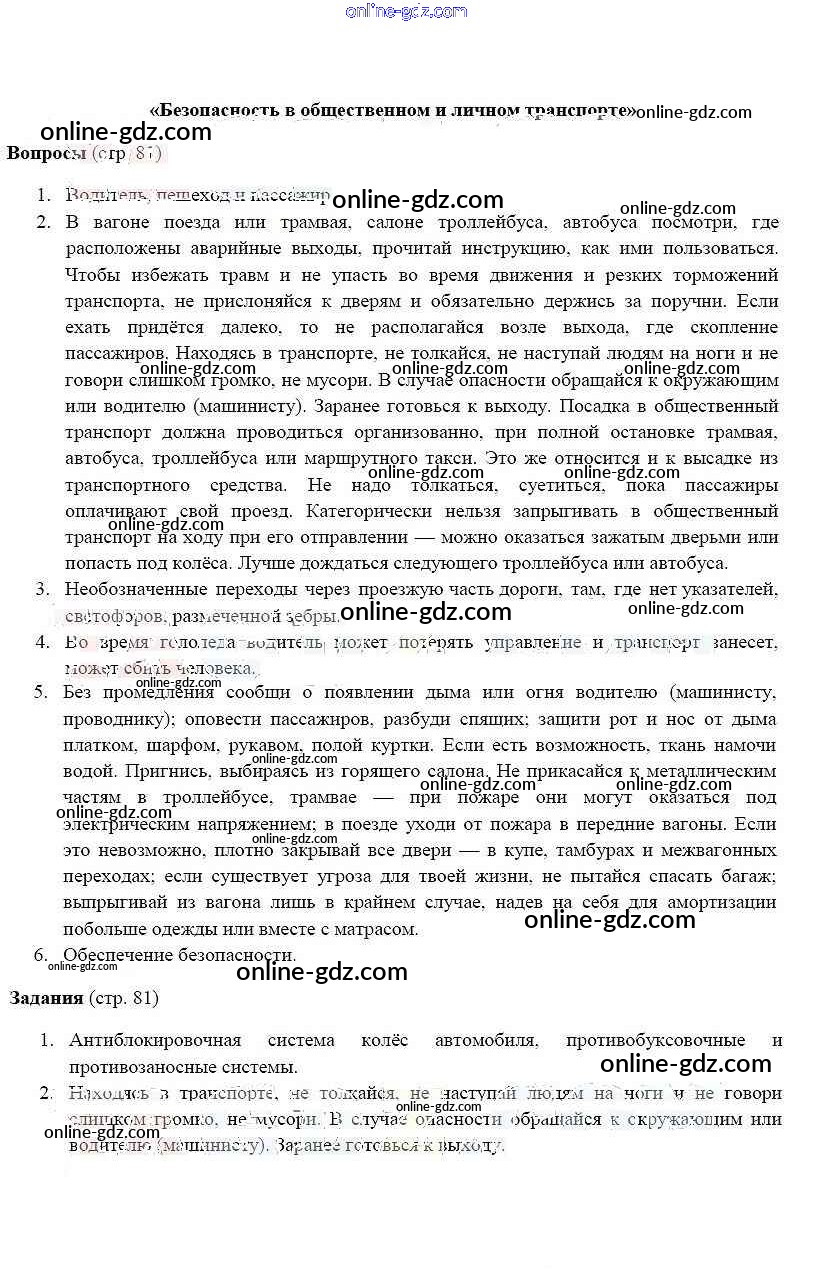 Готовые домашние задания по ОБЖ за 5 класс Учебник Фролов, Шолох 2015 - Страницы 81
