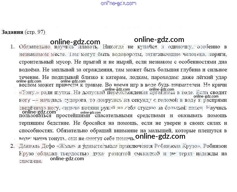Готовые домашние задания по ОБЖ за 5 класс Учебник Фролов, Шолох 2015 - Страницы 97