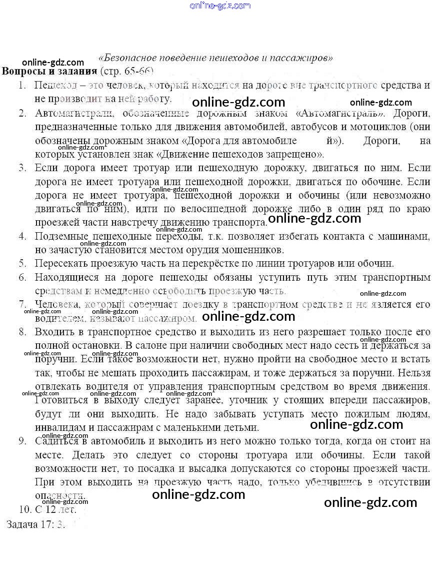 Готовые домашние задания по ОБЖ за 5 класс Учебник Поляков, Кузнецов Вертикаль 2015 - Страницы 65-66