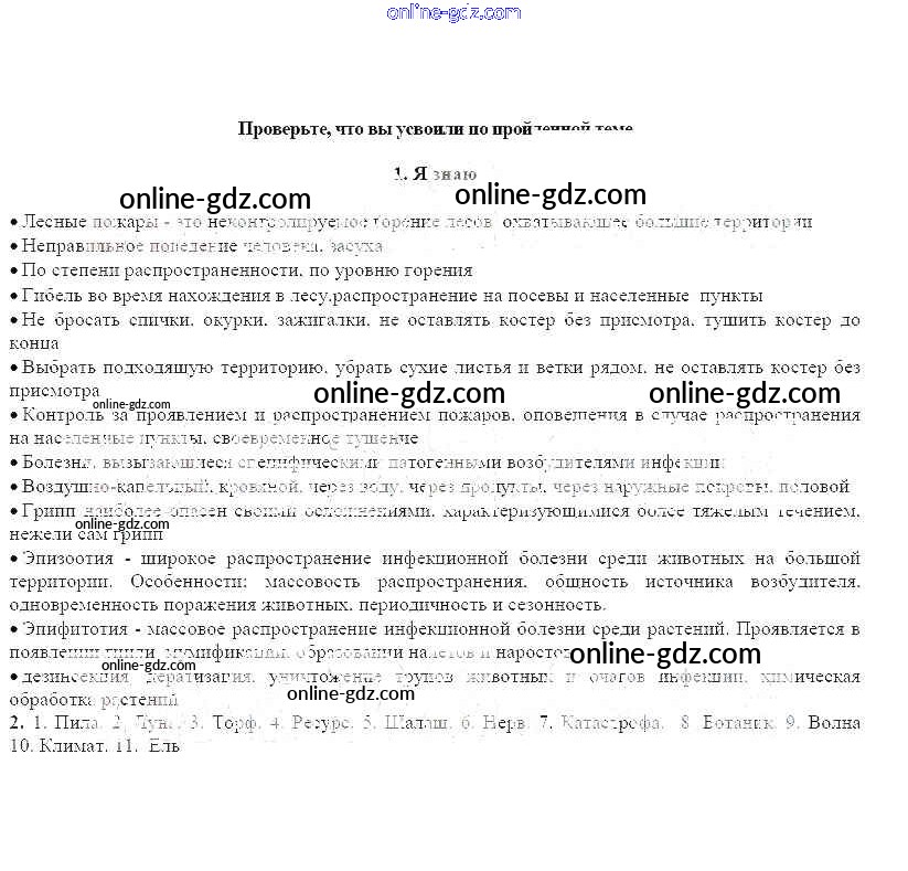Готовые домашние задания по ОБЖ за 7 класс Рабочая тетрадь Смирнов, Хренников 2018 - Глава 5 Проверьте свои знания