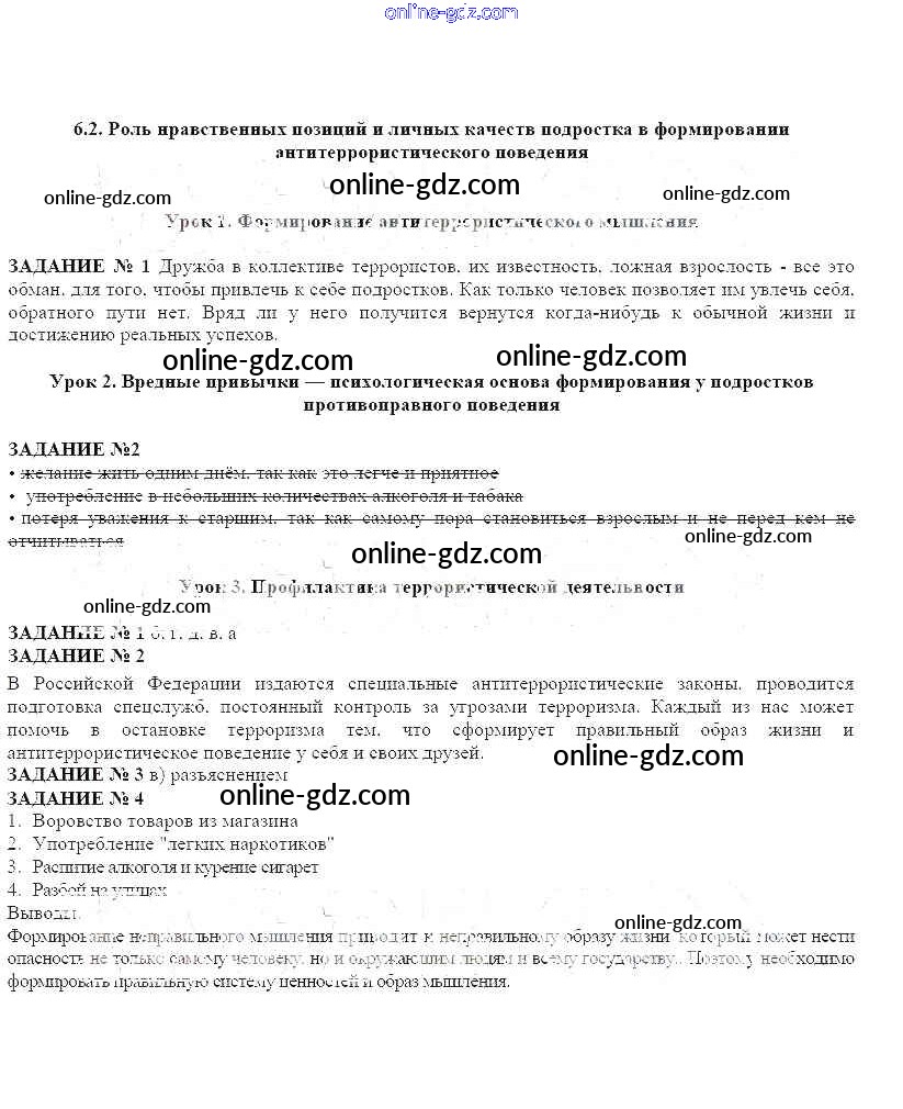 Готовые домашние задания по ОБЖ за 7 класс Рабочая тетрадь Смирнов, Хренников 2018 - Глава 6 6.2