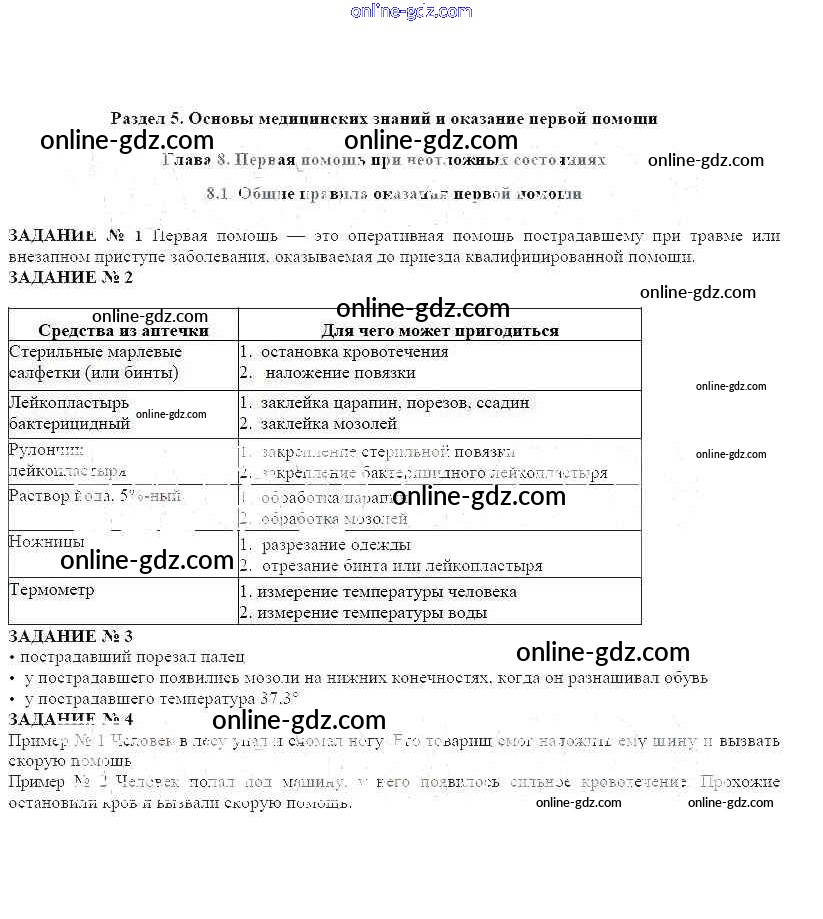 Готовые домашние задания по ОБЖ за 7 класс Рабочая тетрадь Смирнов, Хренников 2018 - Глава 8 8.1