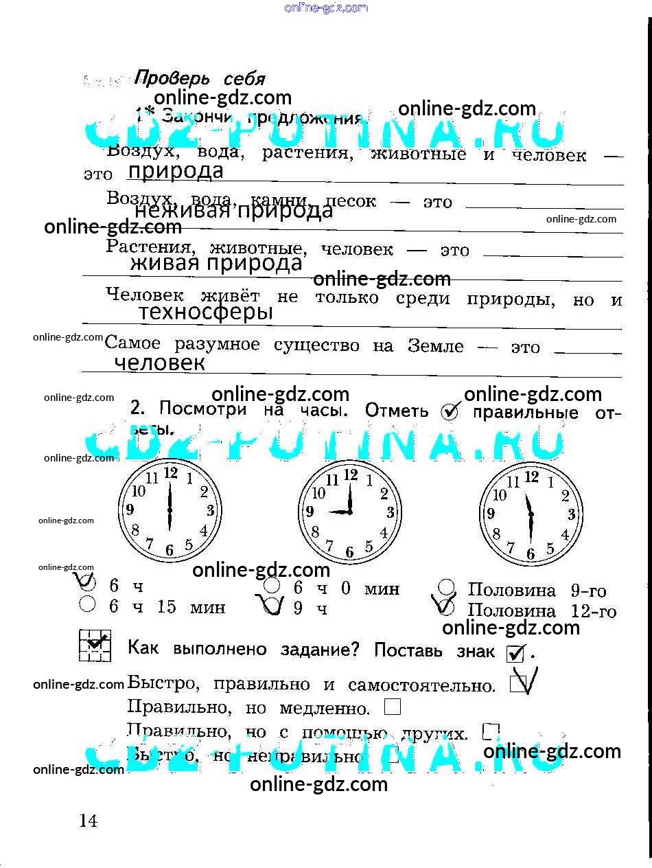Готовые домашние задания по Окружающему миру за 2 класс Рабочая тетрадь Виноградова Алгоритм успеха 2017 - Часть 1. Страницы 14