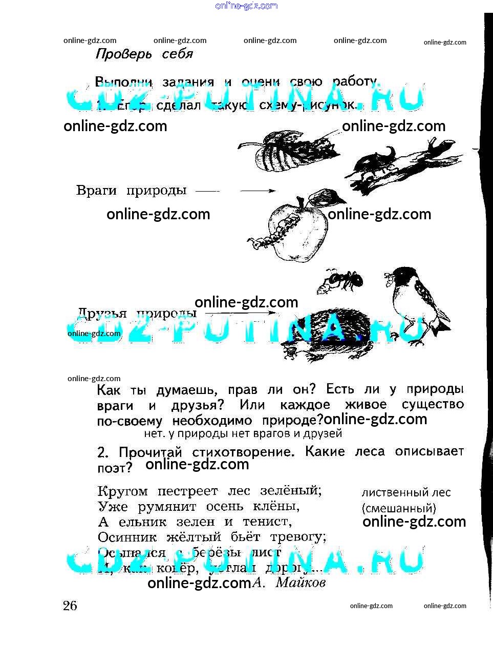 Готовые домашние задания по Окружающему миру за 2 класс Рабочая тетрадь Виноградова Алгоритм успеха 2017 - Часть 2. Страницы 26