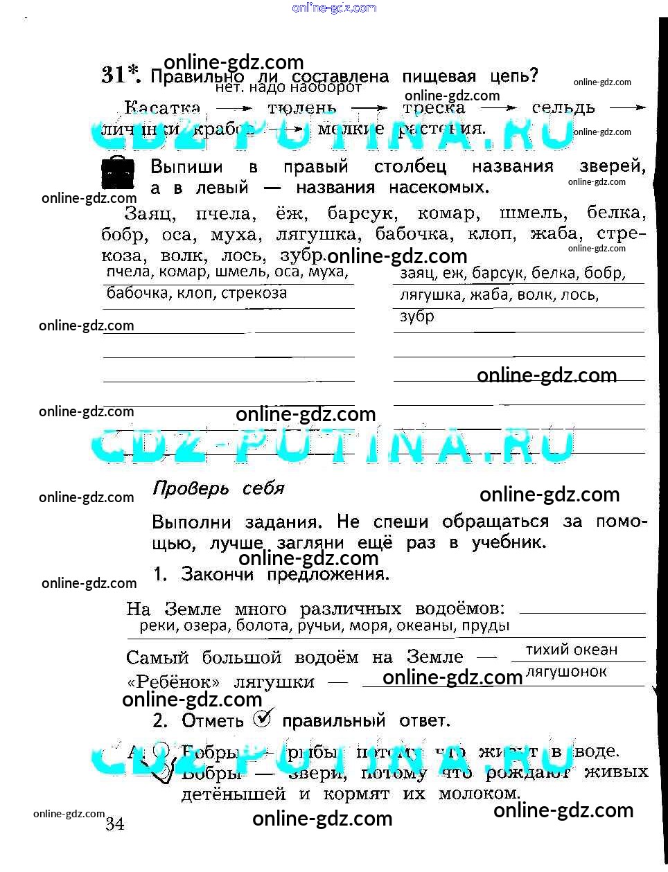 Готовые домашние задания по Окружающему миру за 2 класс Рабочая тетрадь Виноградова Алгоритм успеха 2017 - Часть 2. Страницы 34
