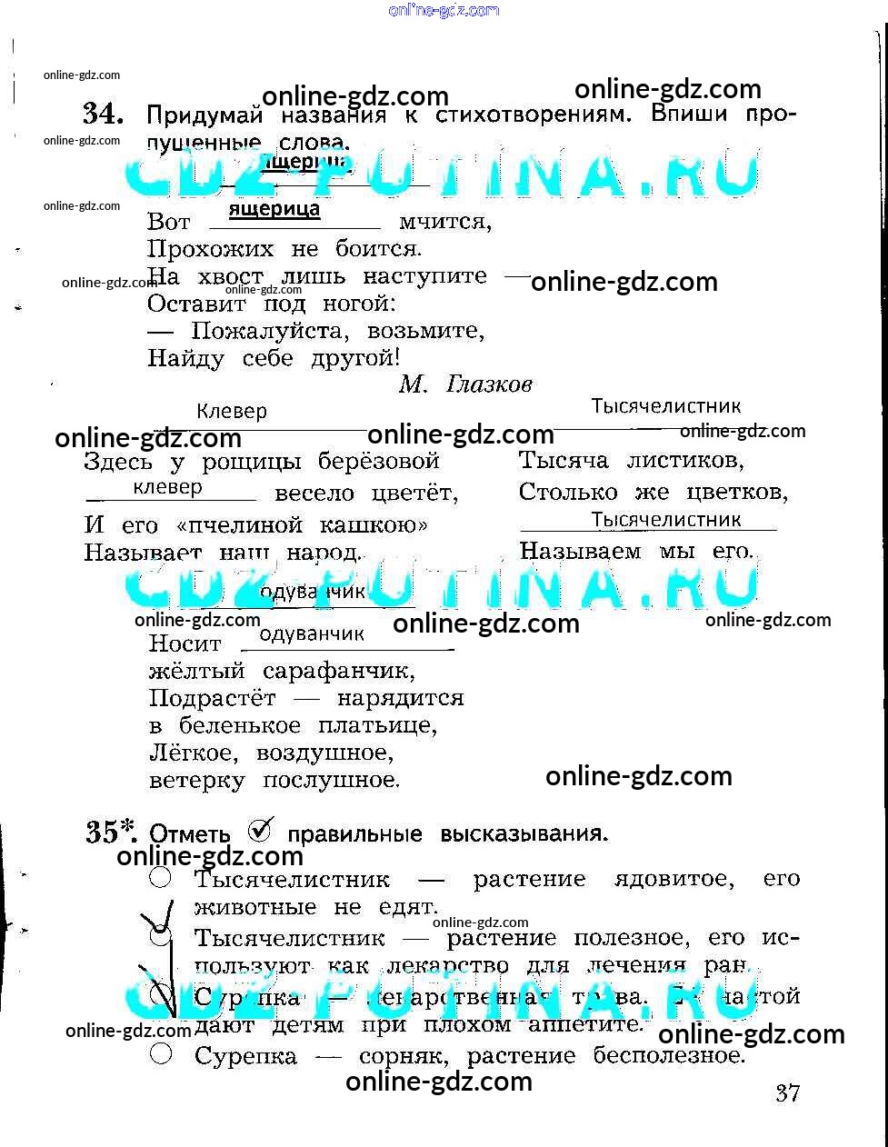 Готовые домашние задания по Окружающему миру за 2 класс Рабочая тетрадь Виноградова Алгоритм успеха 2017 - Часть 2. Страницы 37