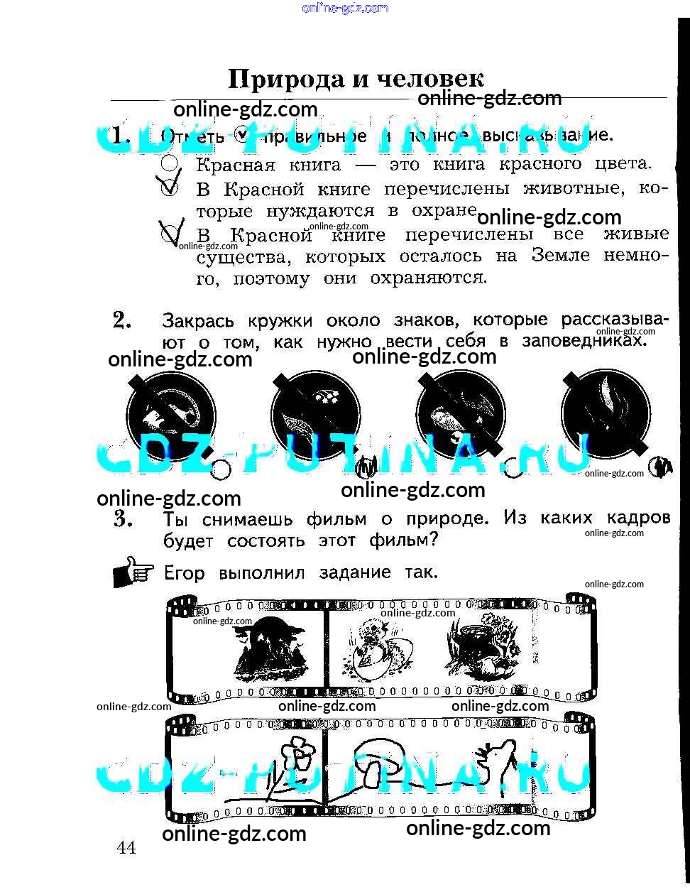Готовые домашние задания по Окружающему миру за 2 класс Рабочая тетрадь Виноградова Алгоритм успеха 2017 - Часть 2. Страницы 44