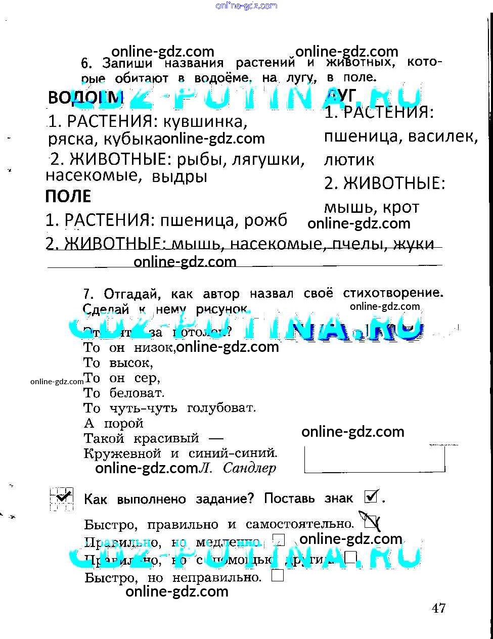 Готовые домашние задания по Окружающему миру за 2 класс Рабочая тетрадь Виноградова Алгоритм успеха 2017 - Часть 2. Страницы 47