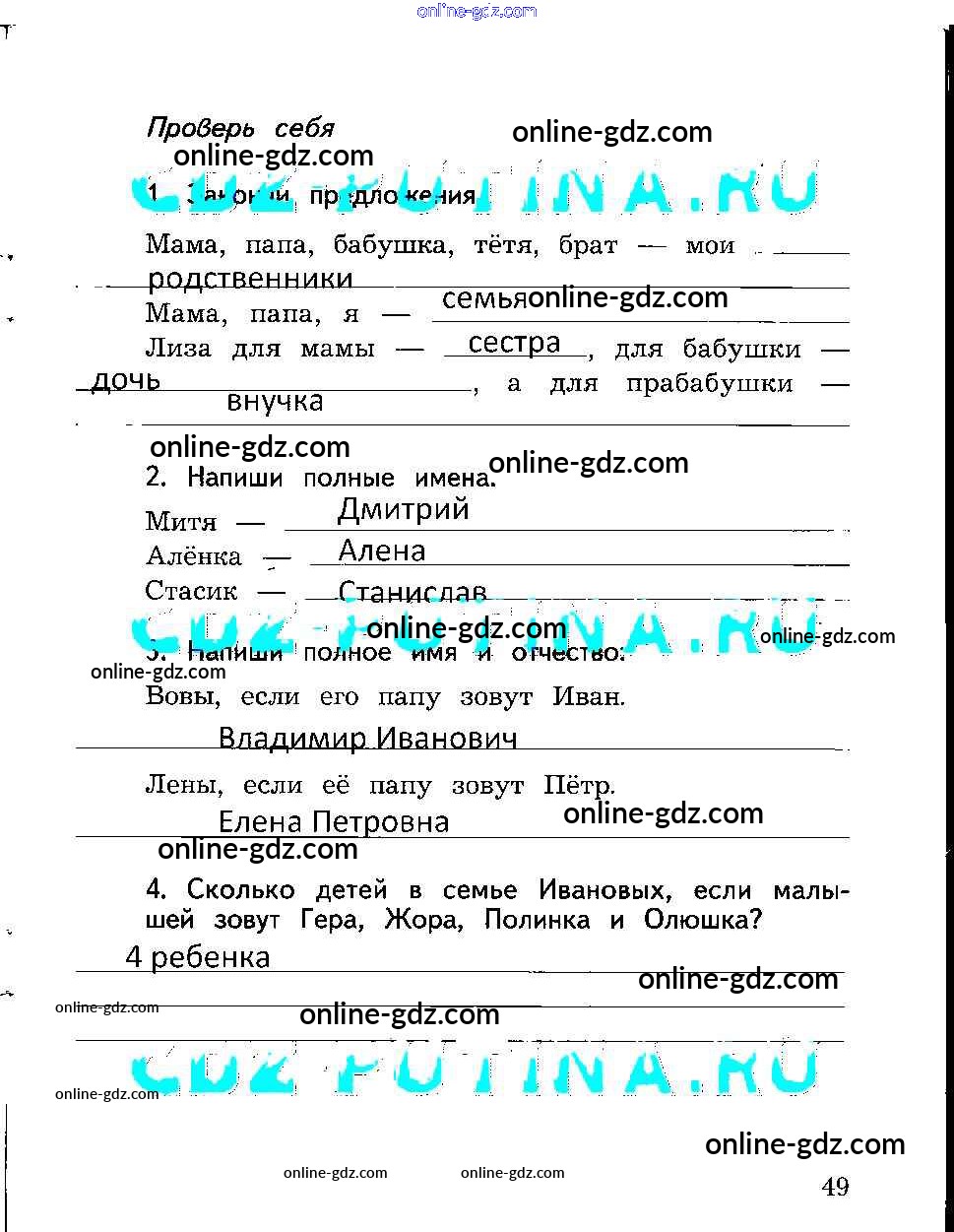 Готовые домашние задания по Окружающему миру за 2 класс Рабочая тетрадь Виноградова Алгоритм успеха 2017 - Часть 1. Страницы 49