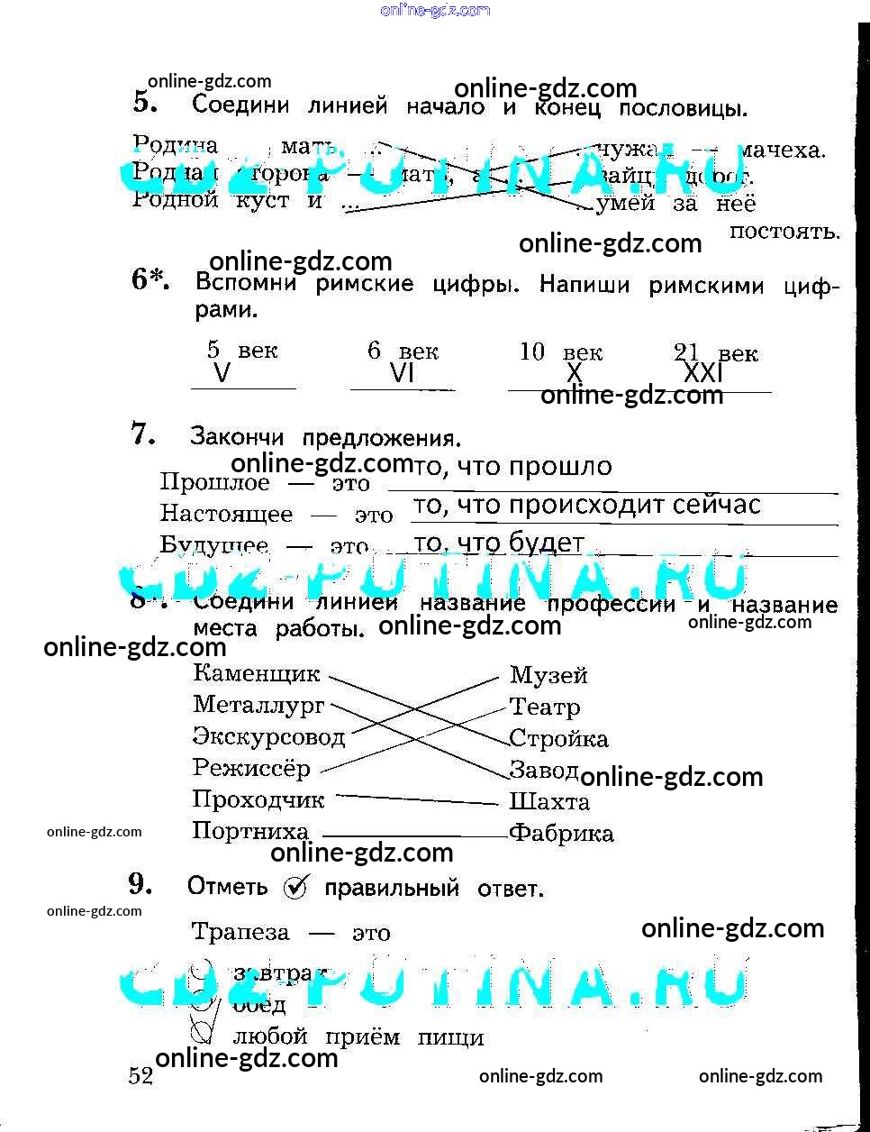 Готовые домашние задания по Окружающему миру за 2 класс Рабочая тетрадь Виноградова Алгоритм успеха 2017 - Часть 1. Страницы 52