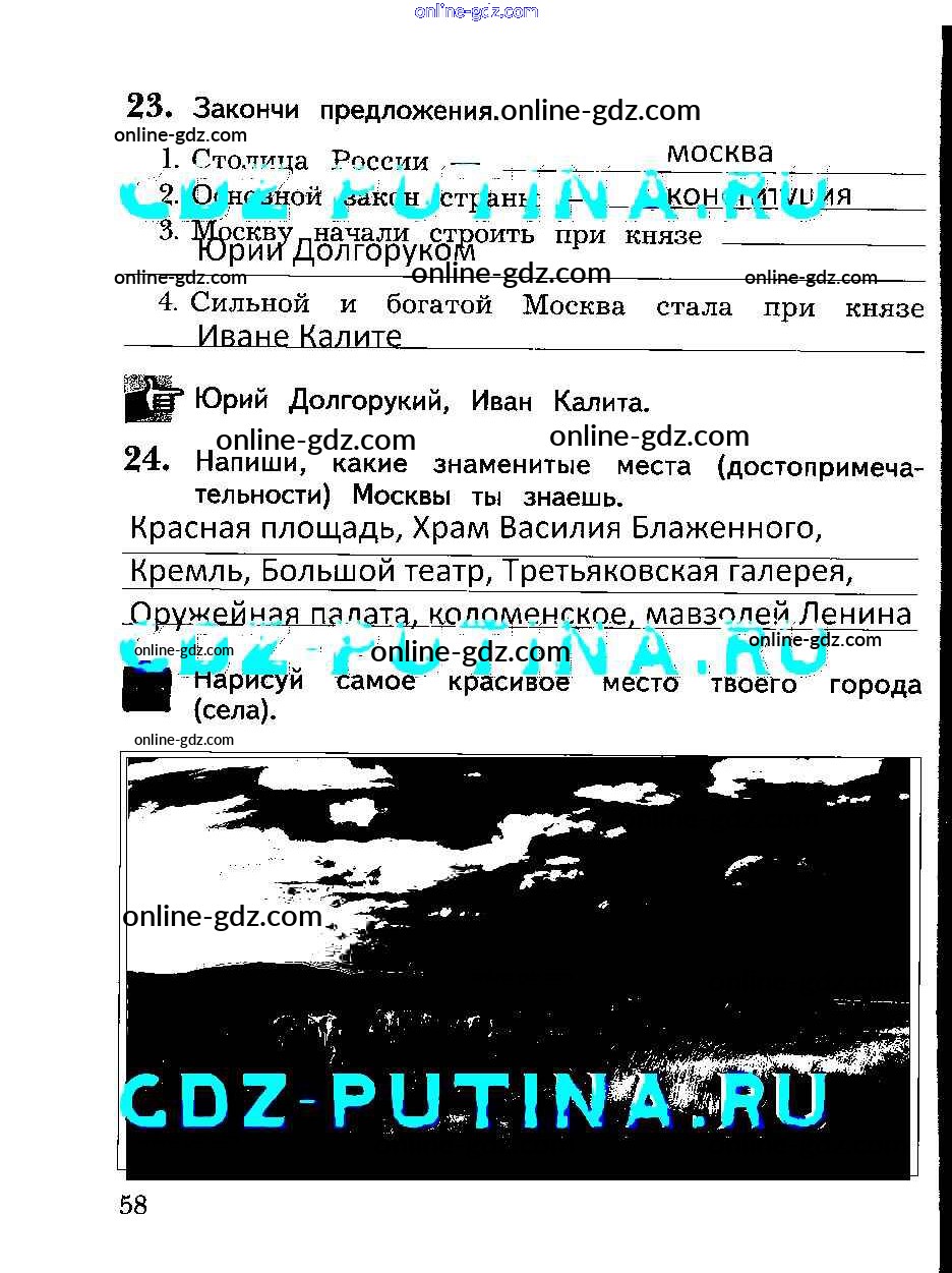 Готовые домашние задания по Окружающему миру за 2 класс Рабочая тетрадь Виноградова Алгоритм успеха 2017 - Часть 1. Страницы 58