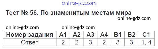 Готовые домашние задания по Окружающему миру за 3 класс Контрольно-измерительные материалы (КИМ) Тихомирова Контрольные измерительные материалы 2014 - Тесты 56