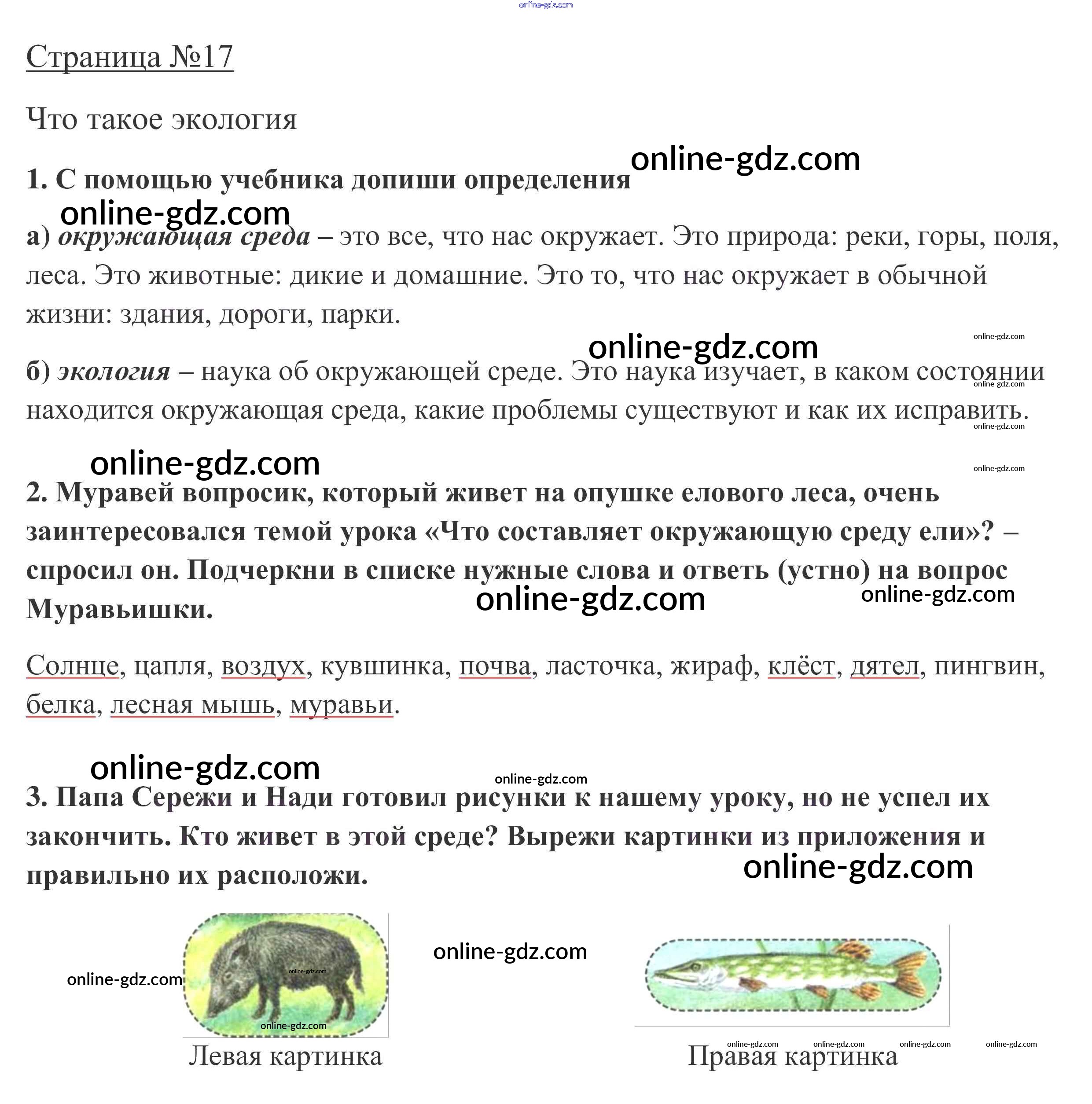 Готовые домашние задания по Окружающему миру за 3 класс Рабочая тетрадь Плешаков Школа России 2017 - Часть 1. Страницы 17
