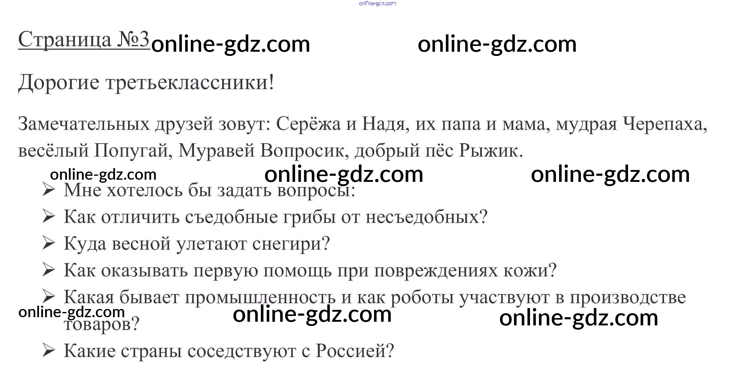Готовые домашние задания по Окружающему миру за 3 класс Рабочая тетрадь Плешаков Школа России 2017 - Часть 1. Страницы 3