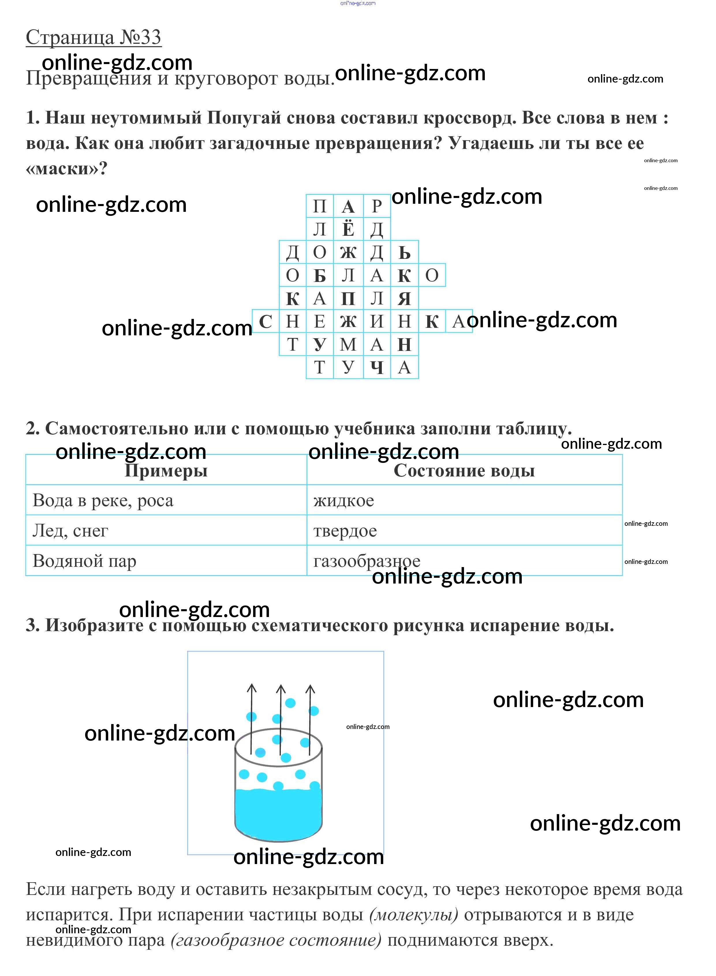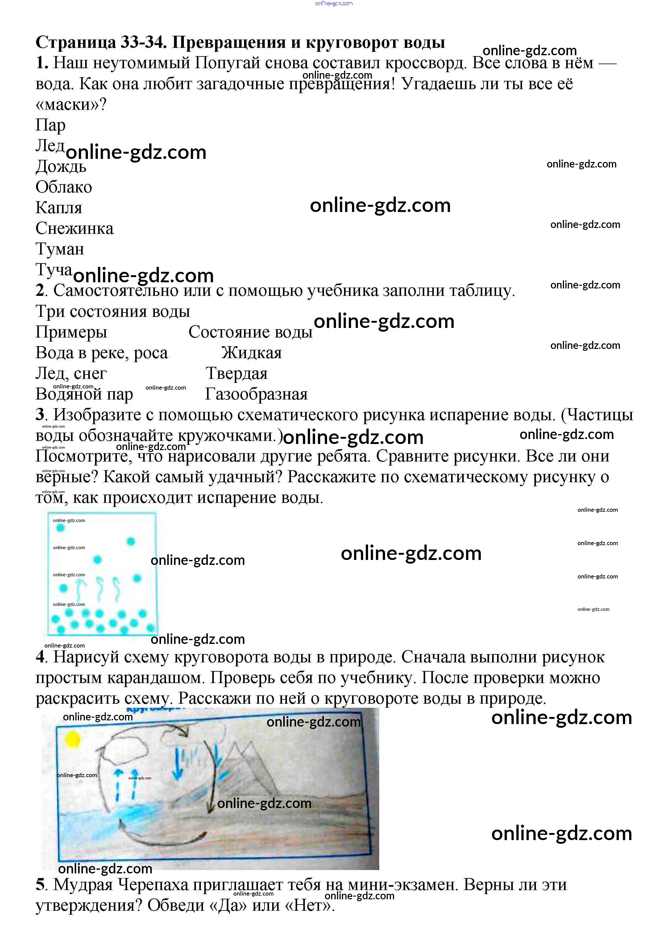 Готовые домашние задания по Окружающему миру за 3 класс Рабочая тетрадь Плешаков Школа России 2017 - Часть 1. Страницы 33