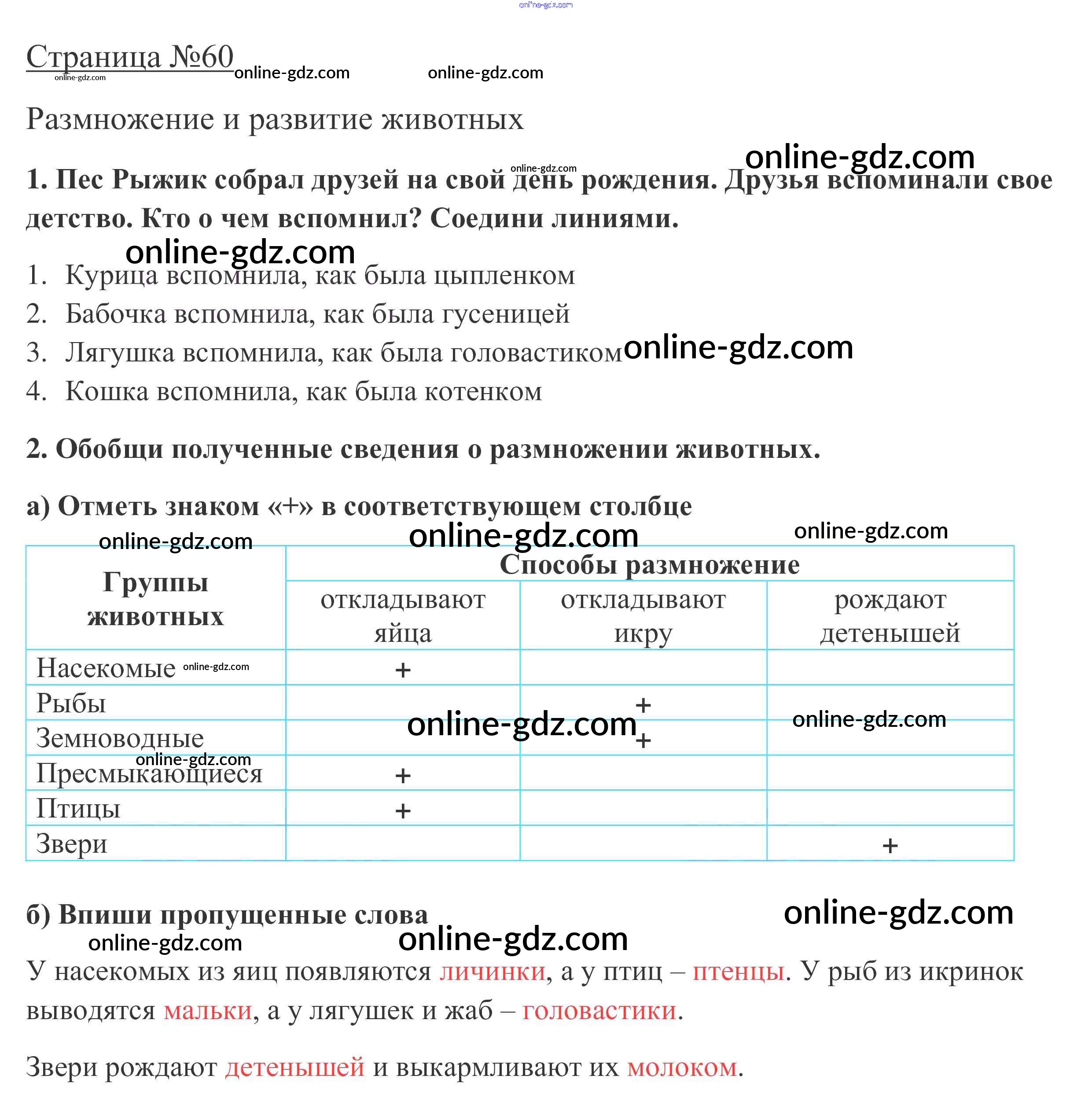 Готовые домашние задания по Окружающему миру за 3 класс Рабочая тетрадь Плешаков Школа России 2017 - Часть 1. Страницы 60