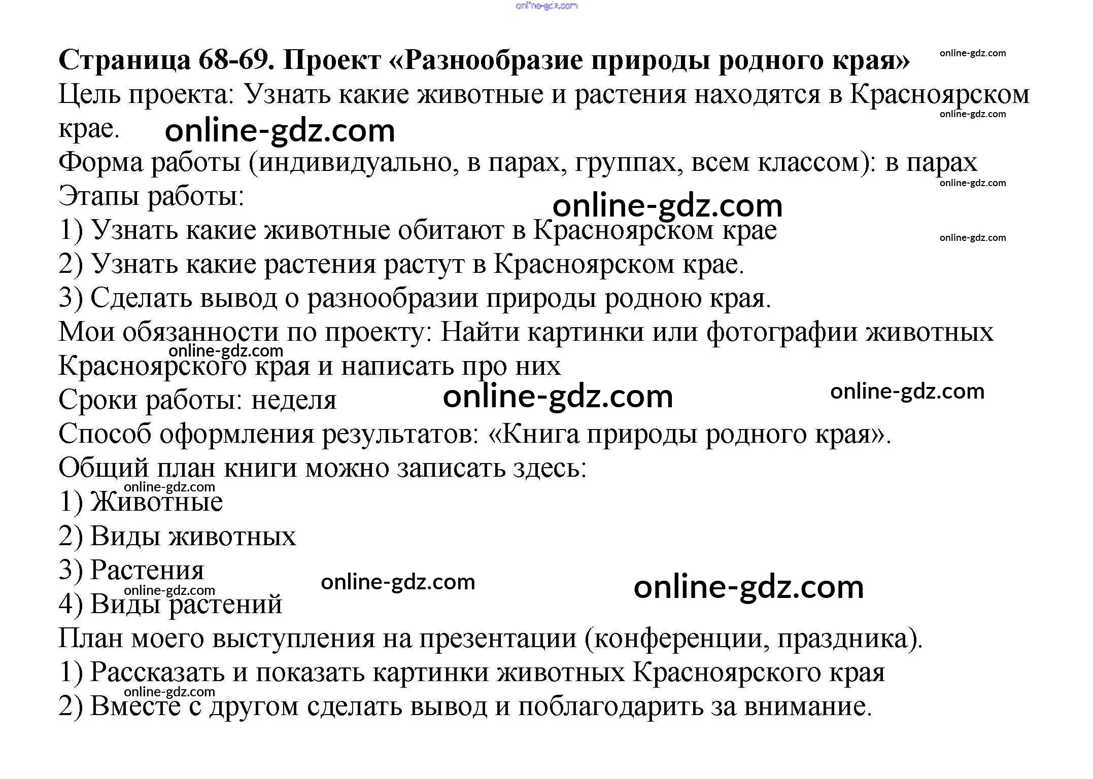 Готовые домашние задания по Окружающему миру за 3 класс Рабочая тетрадь Плешаков Школа России 2017 - Часть 1. Страницы 68