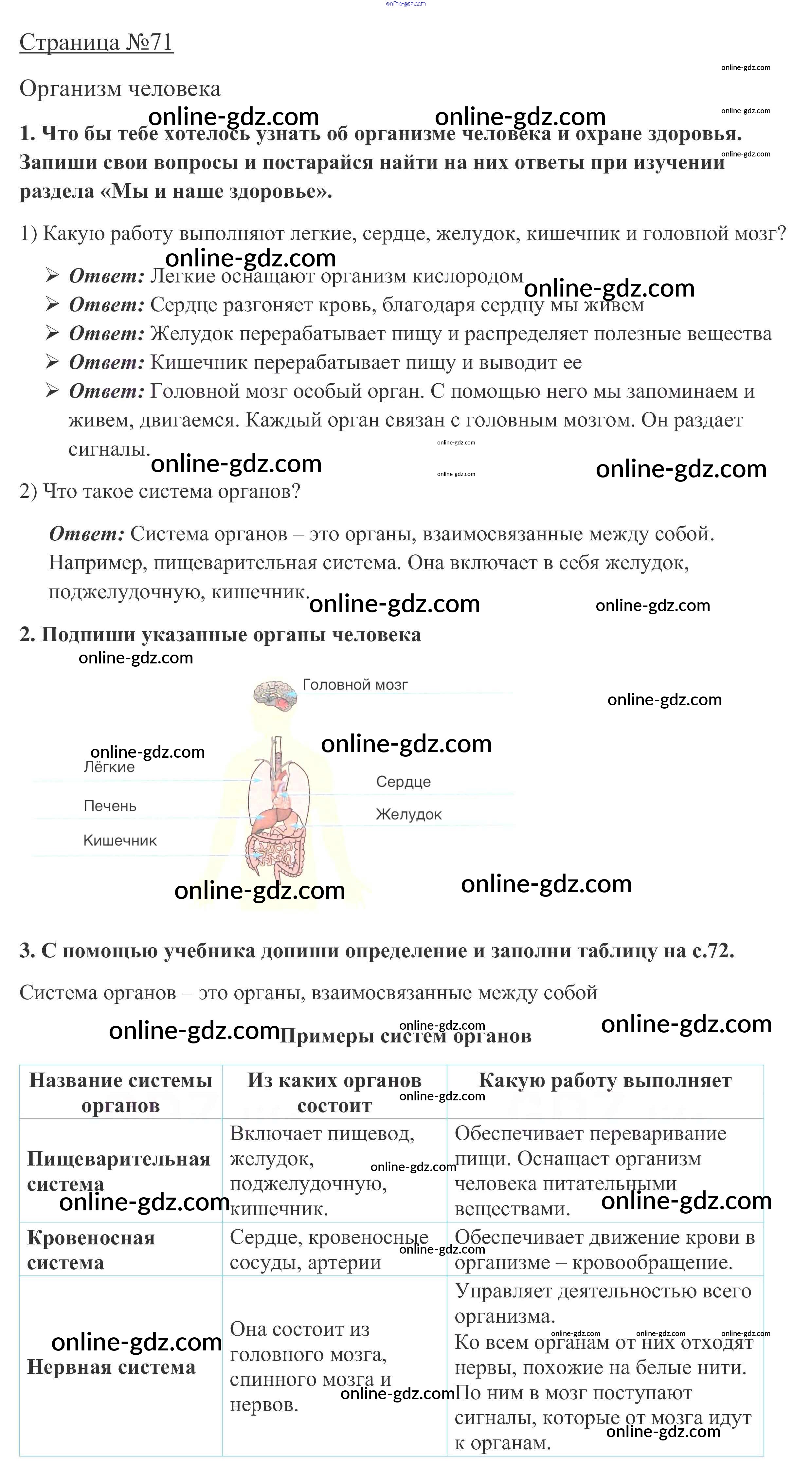 Готовые домашние задания по Окружающему миру за 3 класс Рабочая тетрадь Плешаков Школа России 2017 - Часть 1. Страницы 71
