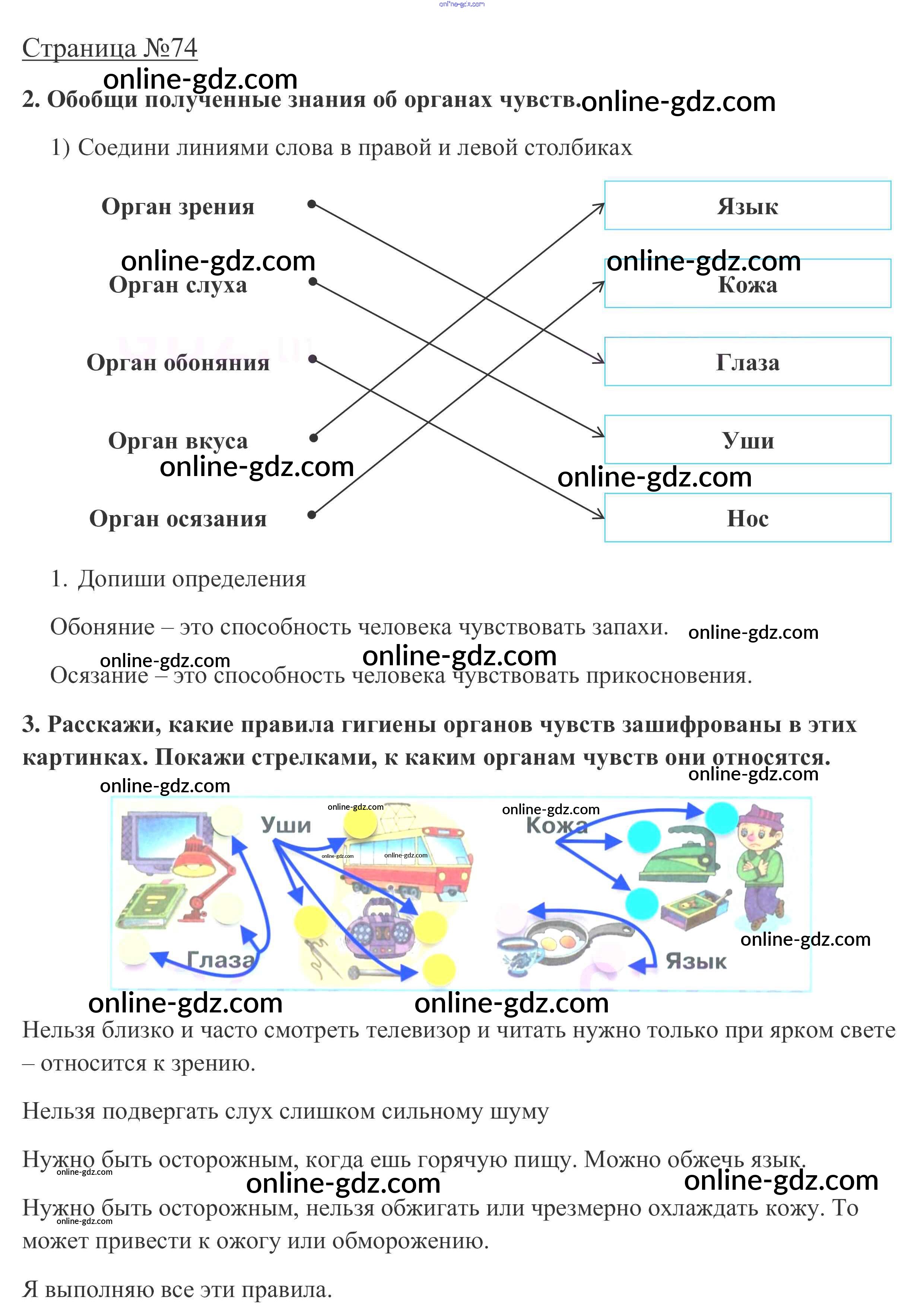 Готовые домашние задания по Окружающему миру за 3 класс Рабочая тетрадь Плешаков Школа России 2017 - Часть 1. Страницы 74