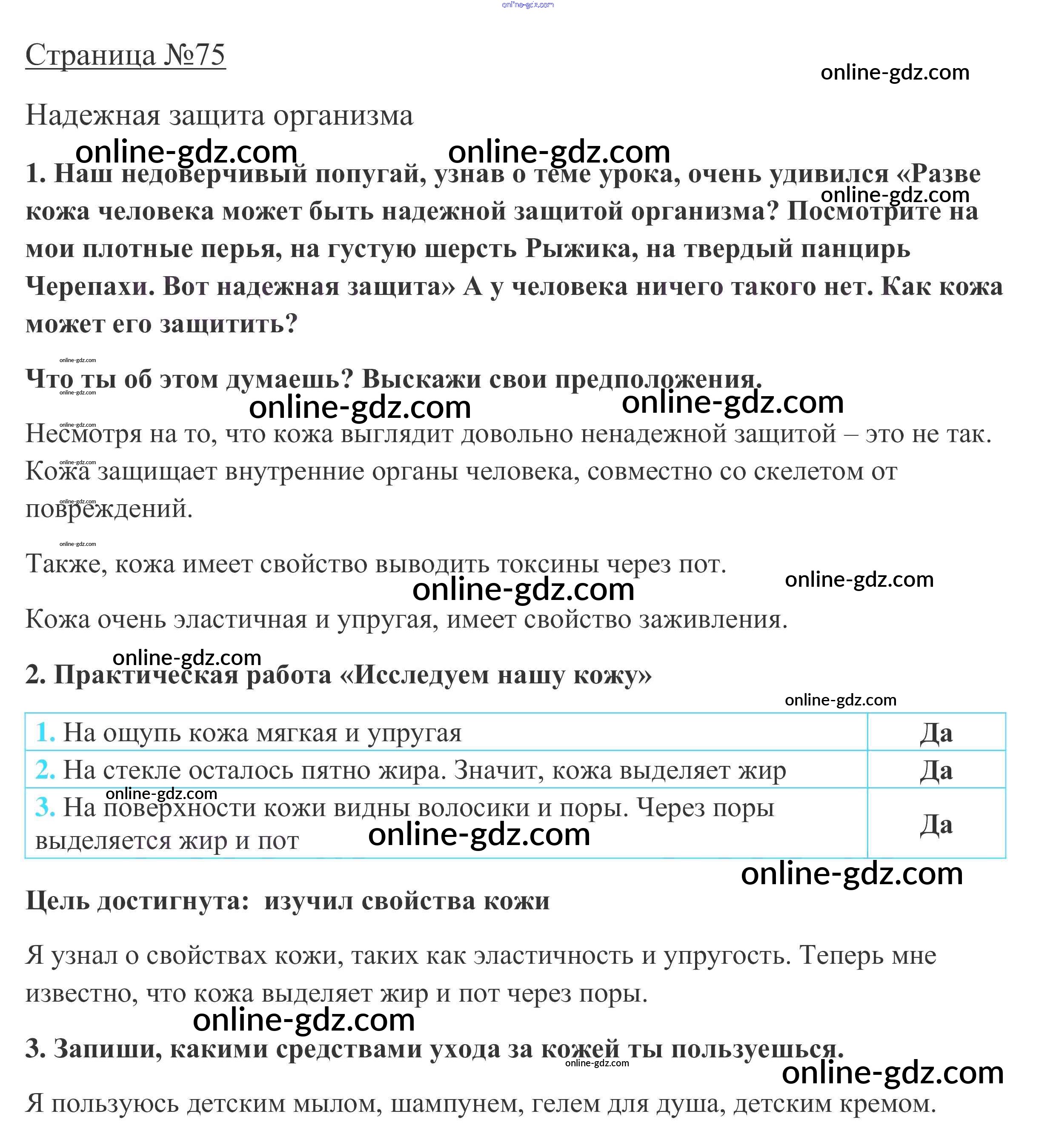 Готовые домашние задания по Окружающему миру за 3 класс Рабочая тетрадь Плешаков Школа России 2017 - Часть 1. Страницы 75