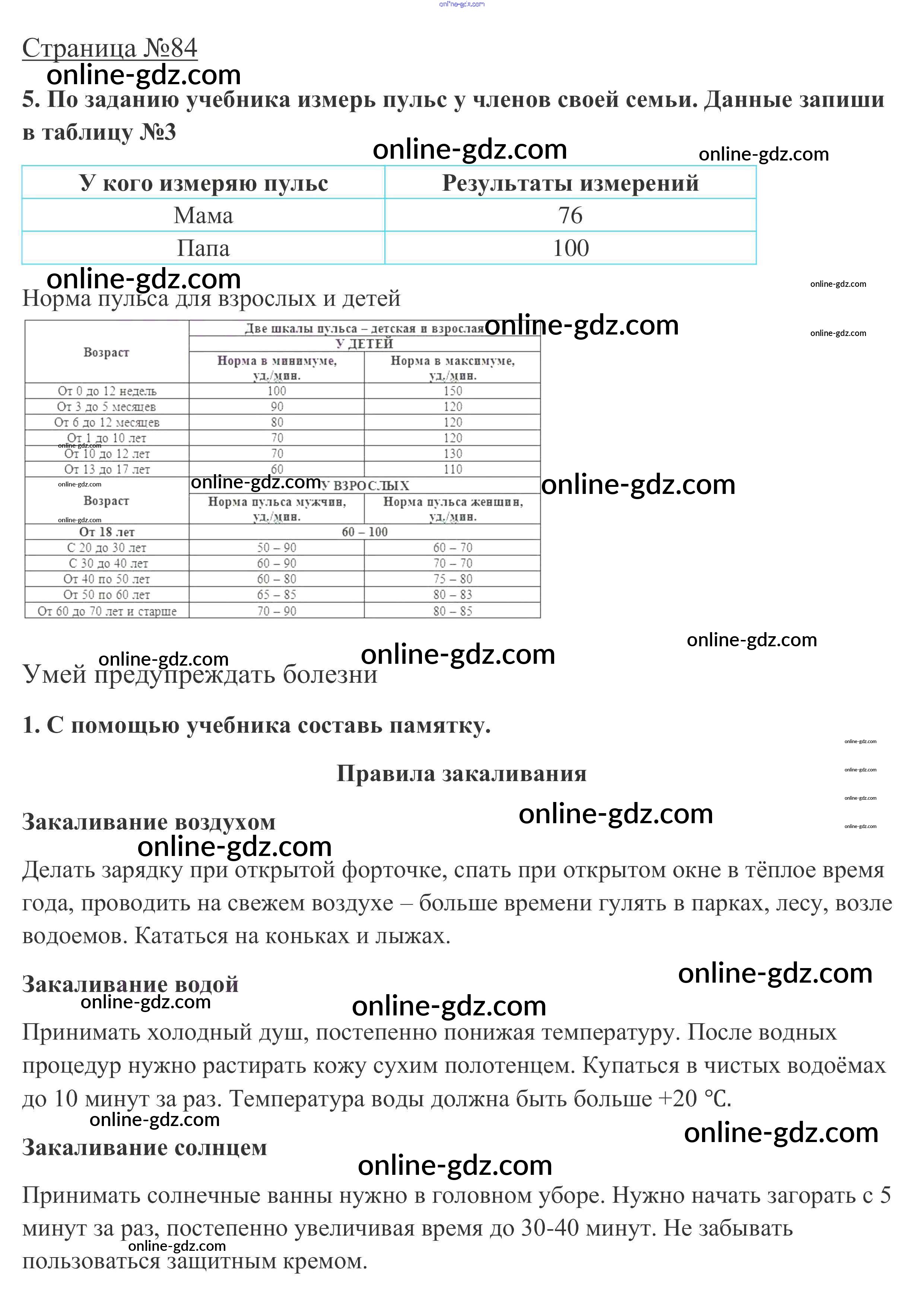Готовые домашние задания по Окружающему миру за 3 класс Рабочая тетрадь Плешаков Школа России 2017 - Часть 1. Страницы 84