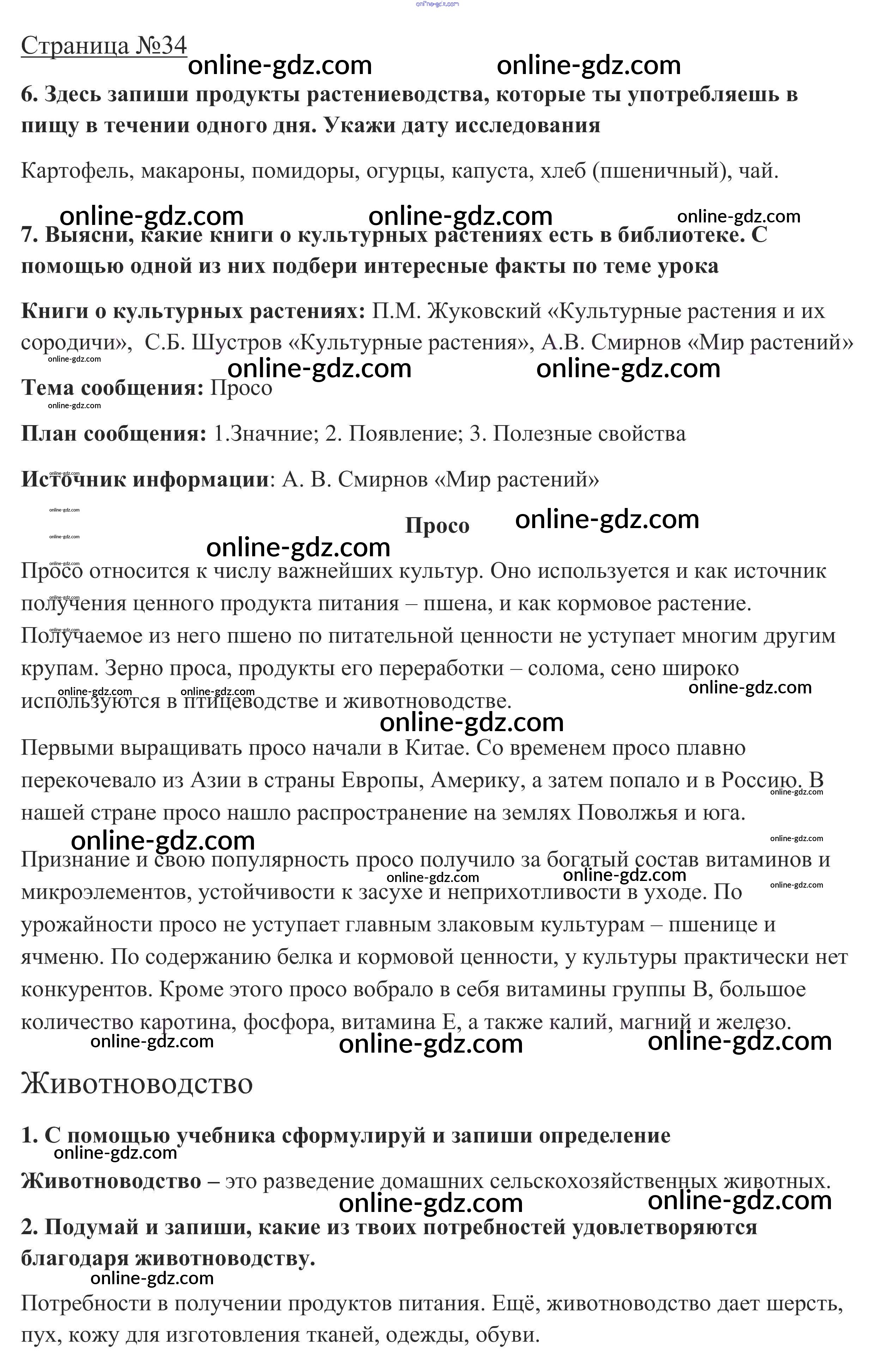 Готовые домашние задания по Окружающему миру за 3 класс Рабочая тетрадь Плешаков Школа России 2017 - Часть 2. Страницы 34