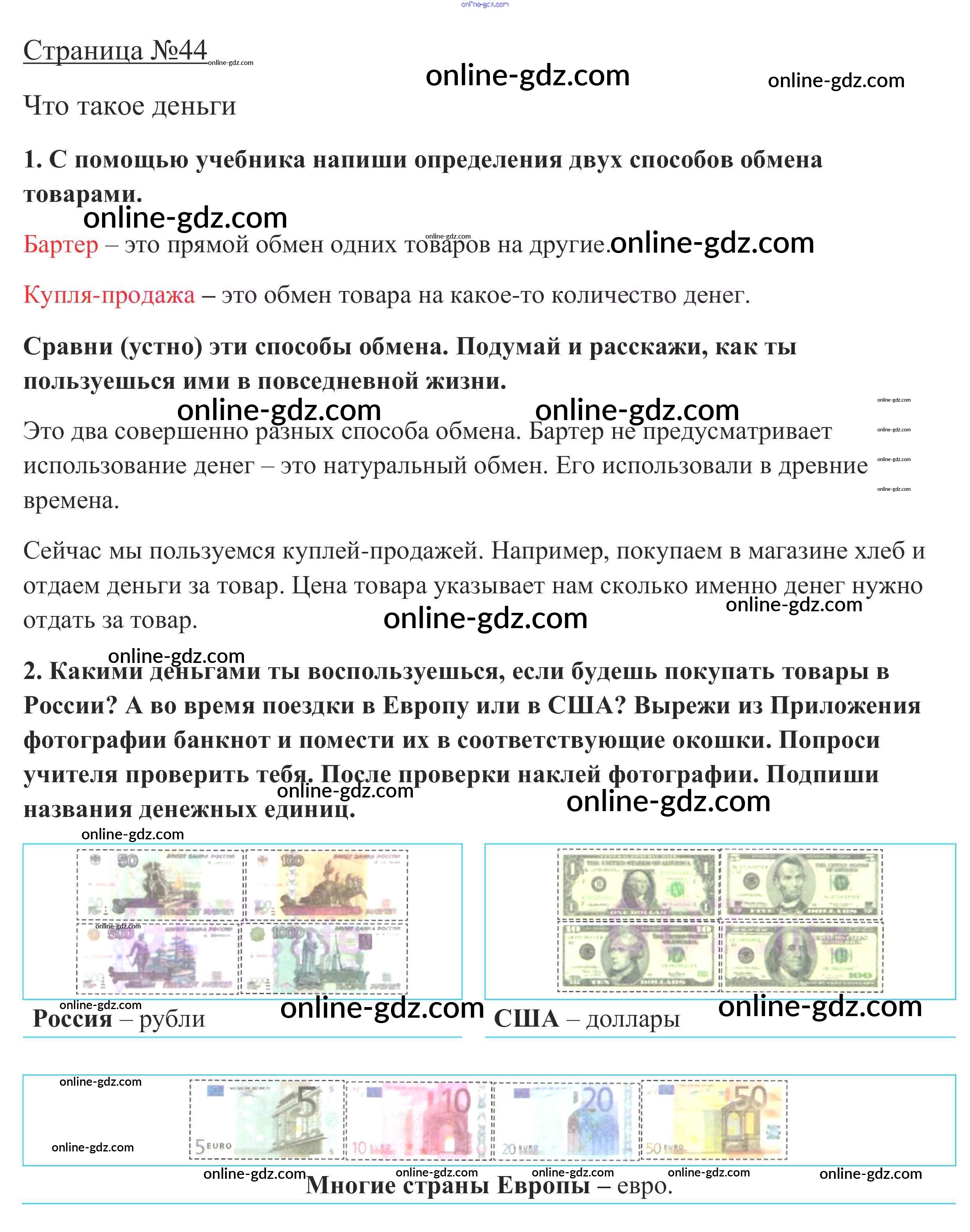 Готовые домашние задания по Окружающему миру за 3 класс Рабочая тетрадь Плешаков Школа России 2017 - Часть 2. Страницы 44