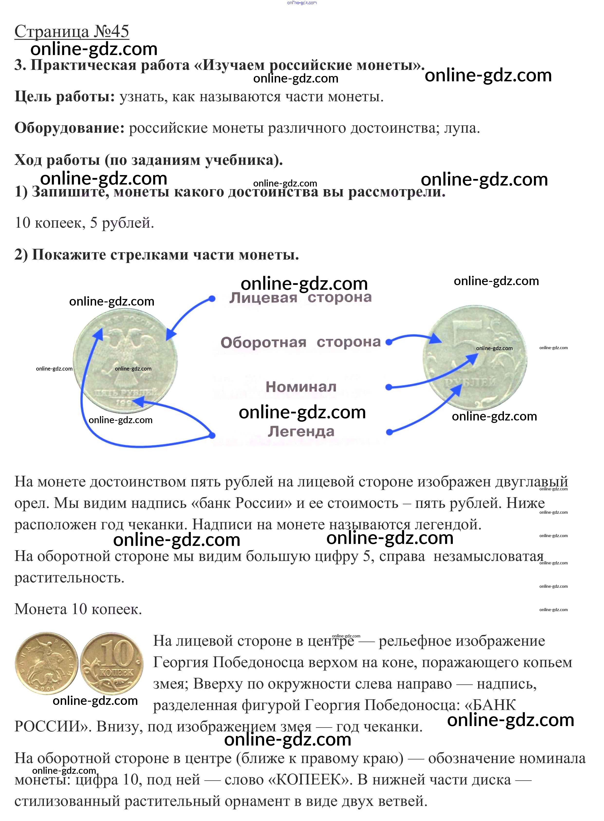 Готовые домашние задания по Окружающему миру за 3 класс Рабочая тетрадь Плешаков Школа России 2017 - Часть 2. Страницы 45