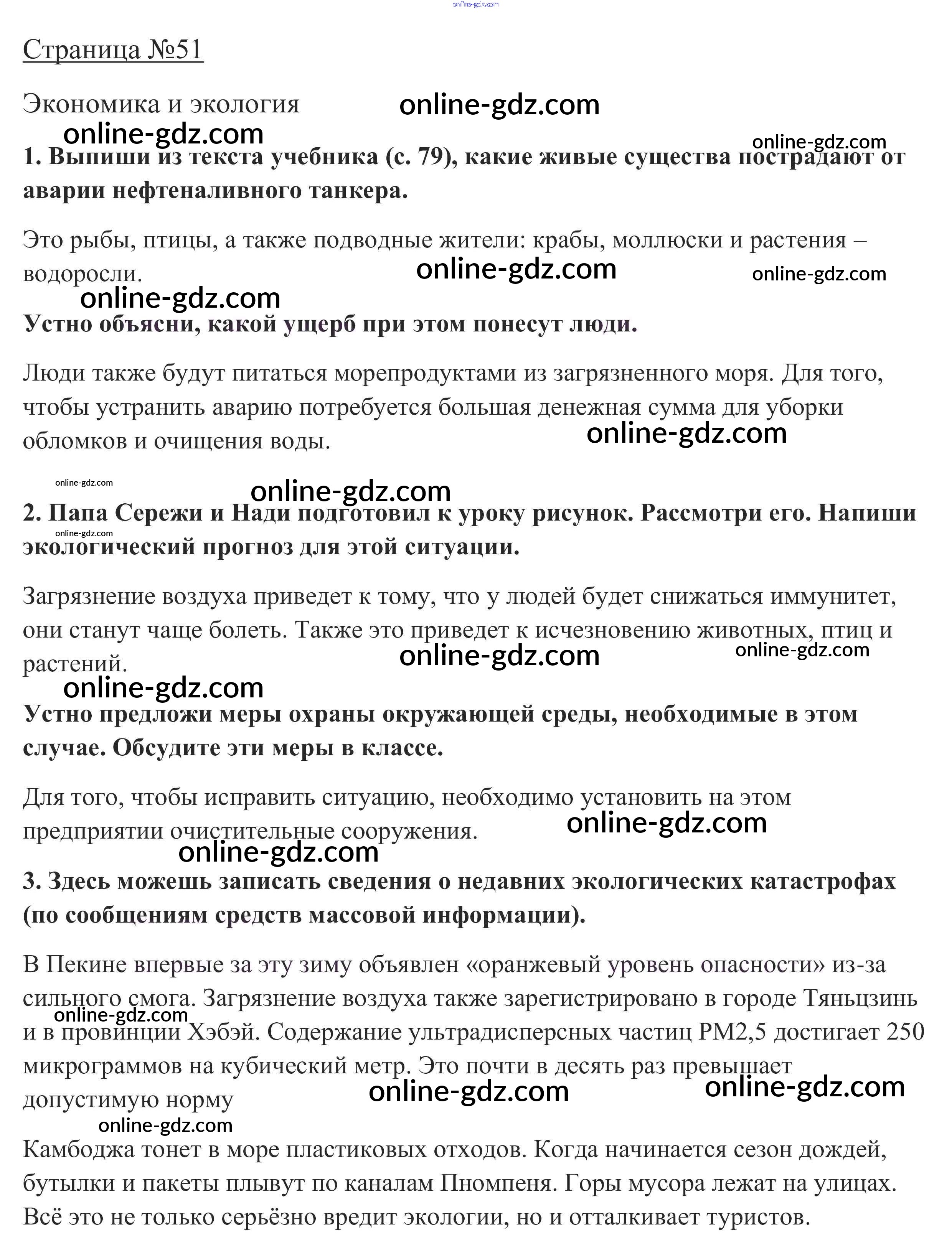 Готовые домашние задания по Окружающему миру за 3 класс Рабочая тетрадь Плешаков Школа России 2017 - Часть 2. Страницы 51
