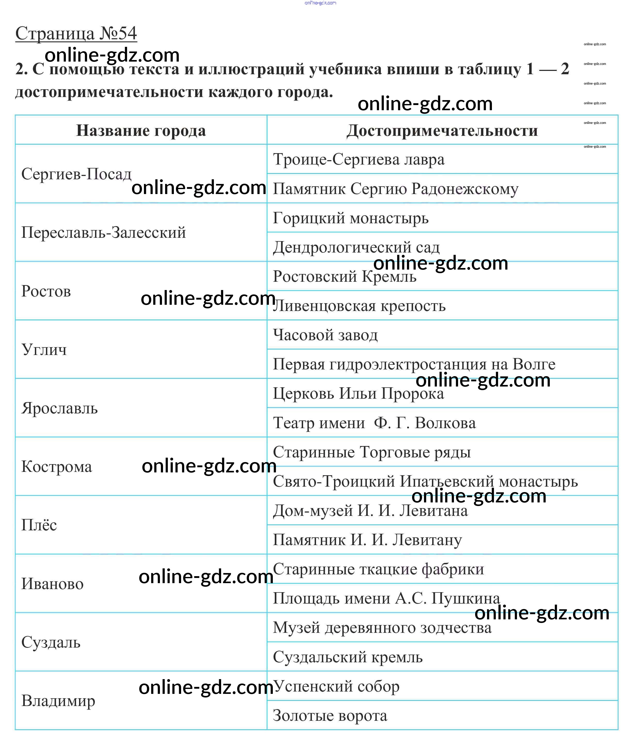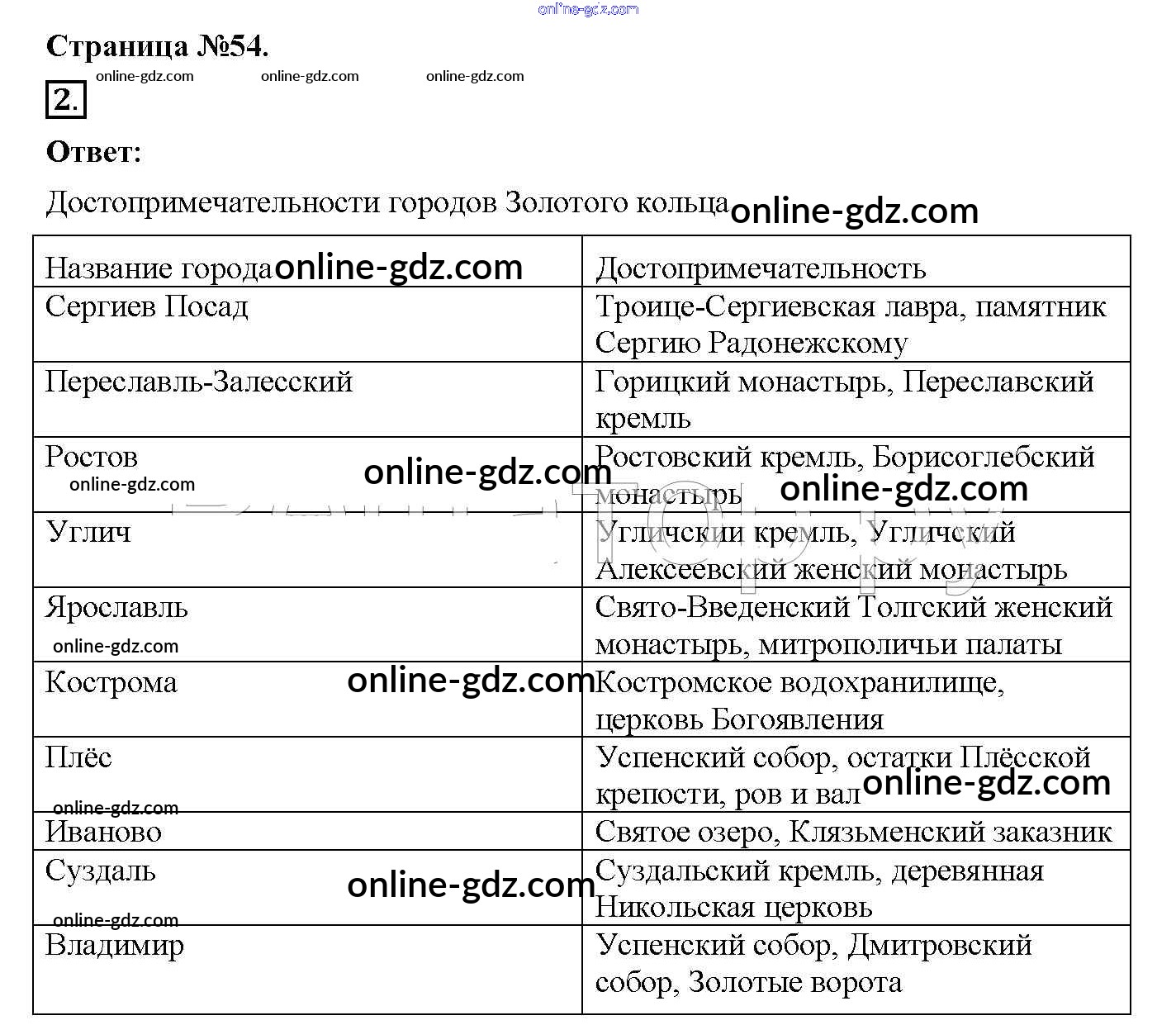 Готовые домашние задания по Окружающему миру за 3 класс Рабочая тетрадь Плешаков Школа России 2017 - Часть 2. Страницы 54