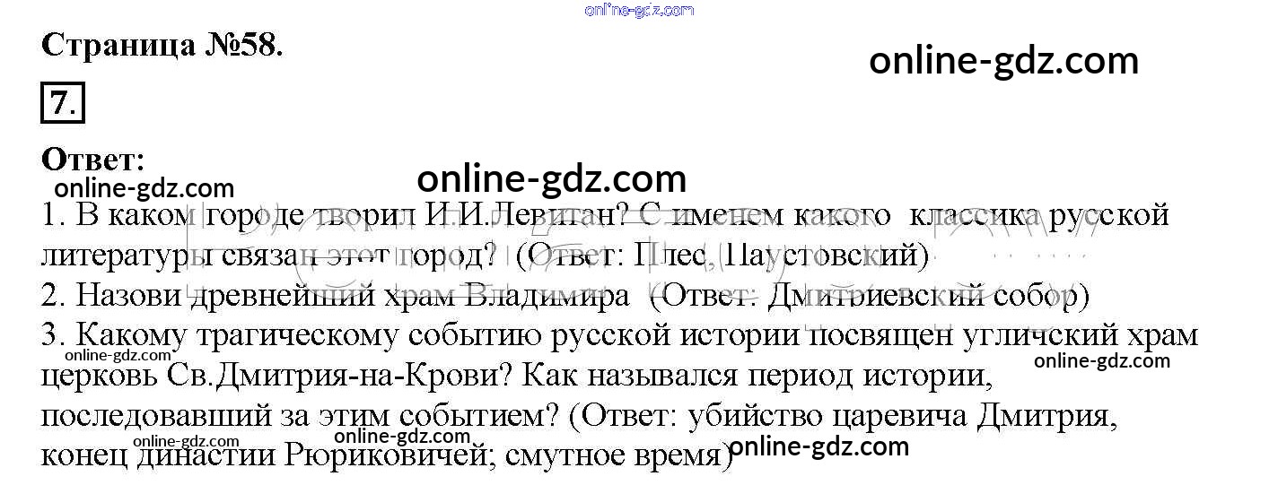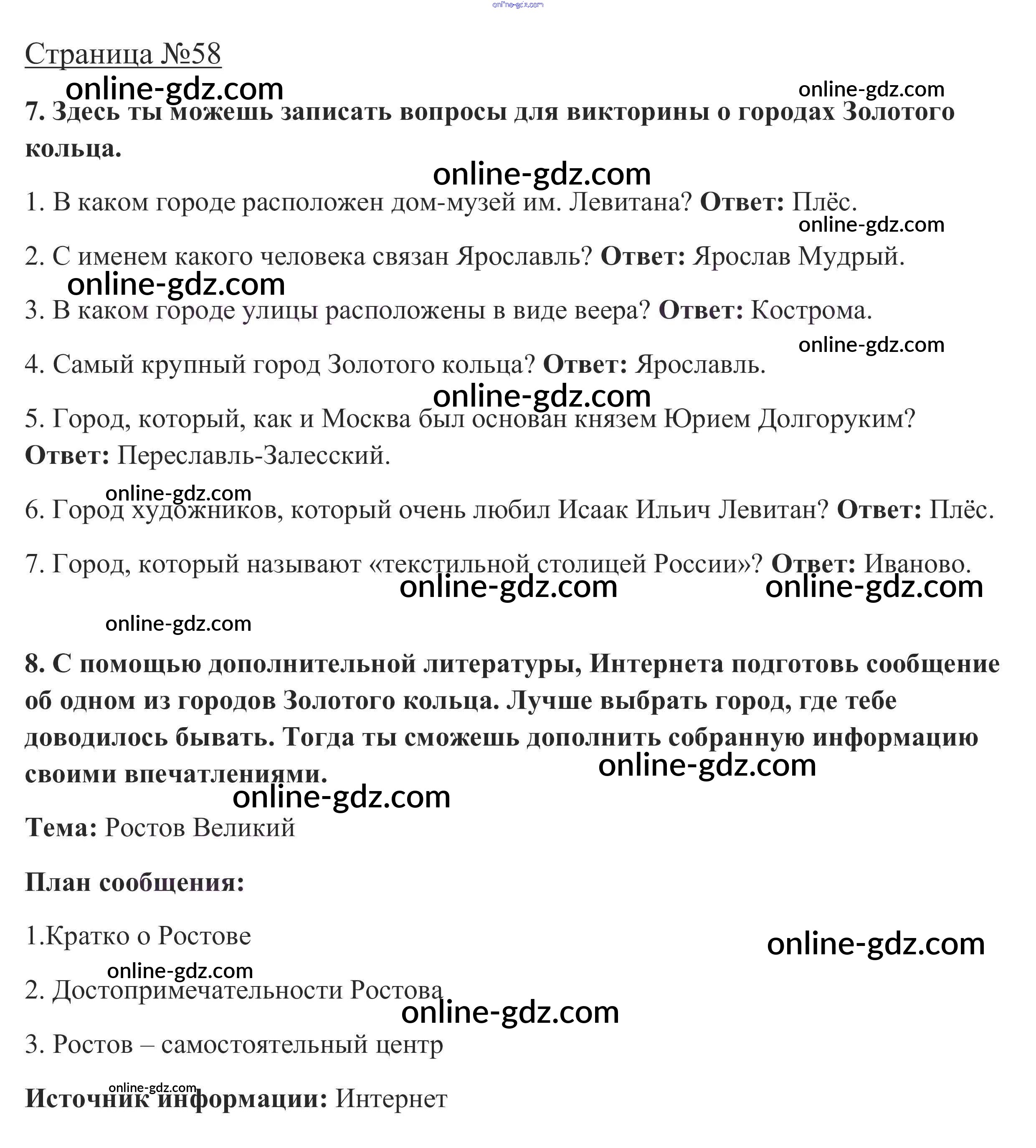 Готовые домашние задания по Окружающему миру за 3 класс Рабочая тетрадь Плешаков Школа России 2017 - Часть 2. Страницы 58