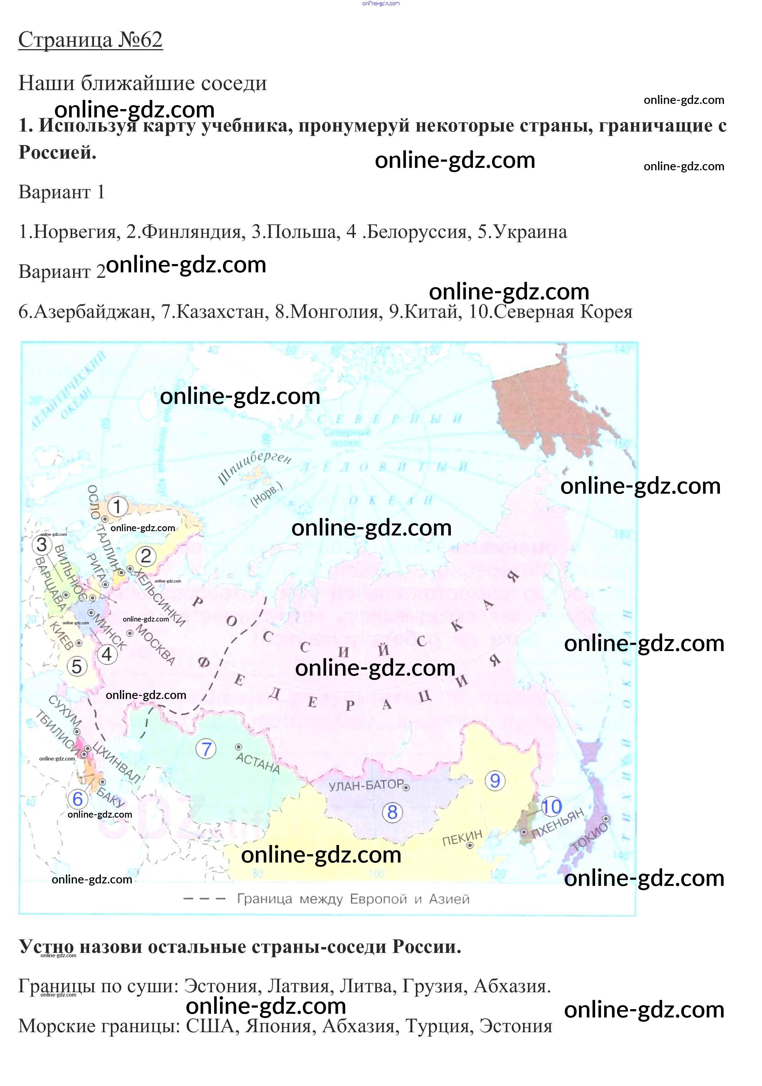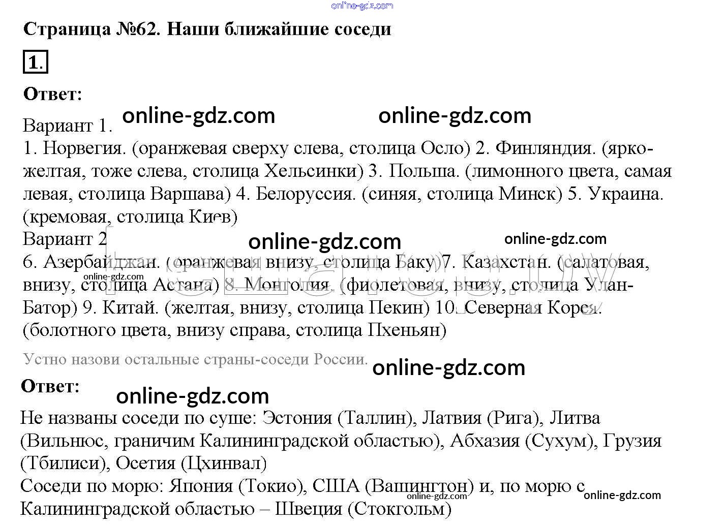 Готовые домашние задания по Окружающему миру за 3 класс Рабочая тетрадь Плешаков Школа России 2017 - Часть 2. Страницы 62
