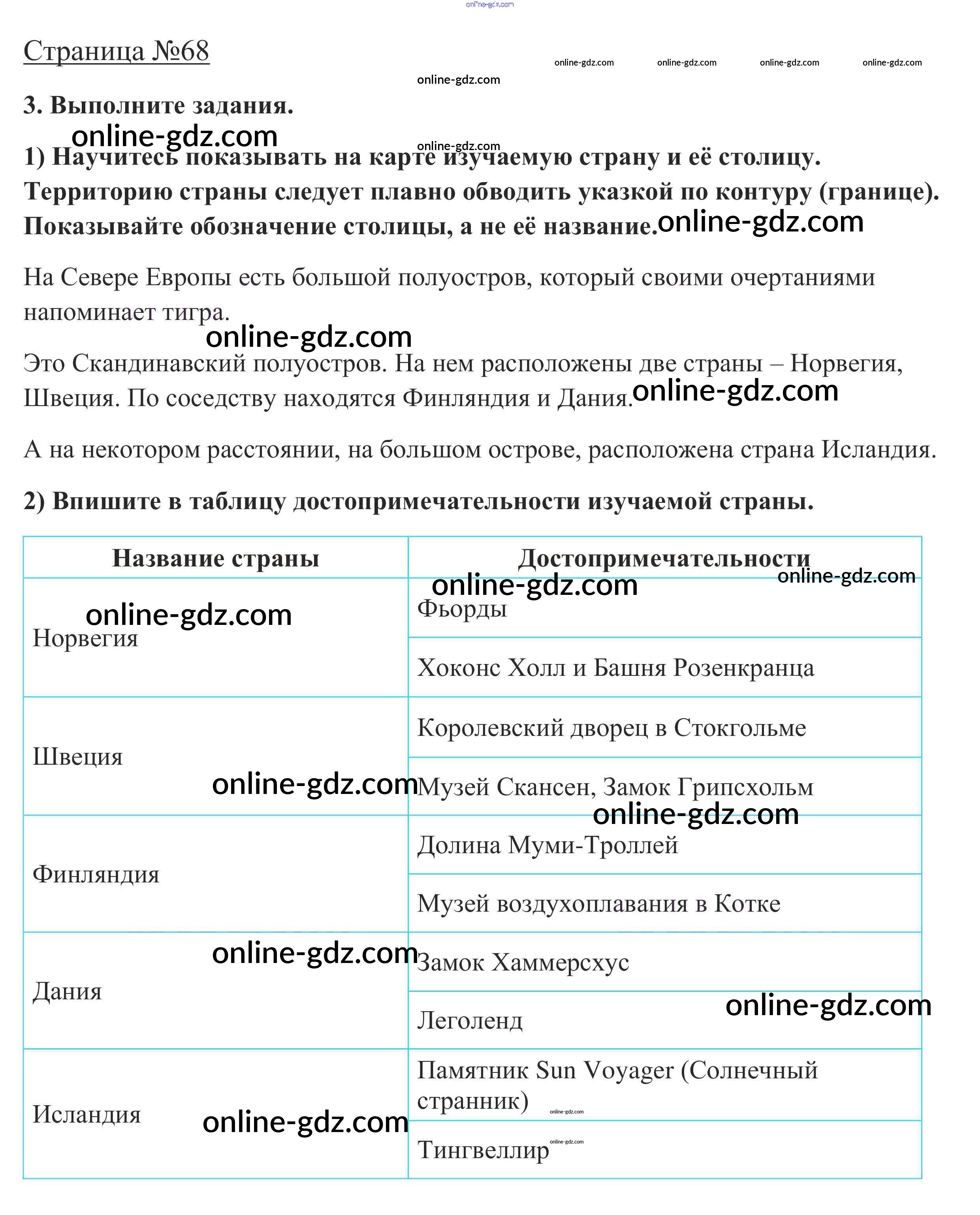 Готовые домашние задания по Окружающему миру за 3 класс Рабочая тетрадь Плешаков Школа России 2017 - Часть 2. Страницы 68