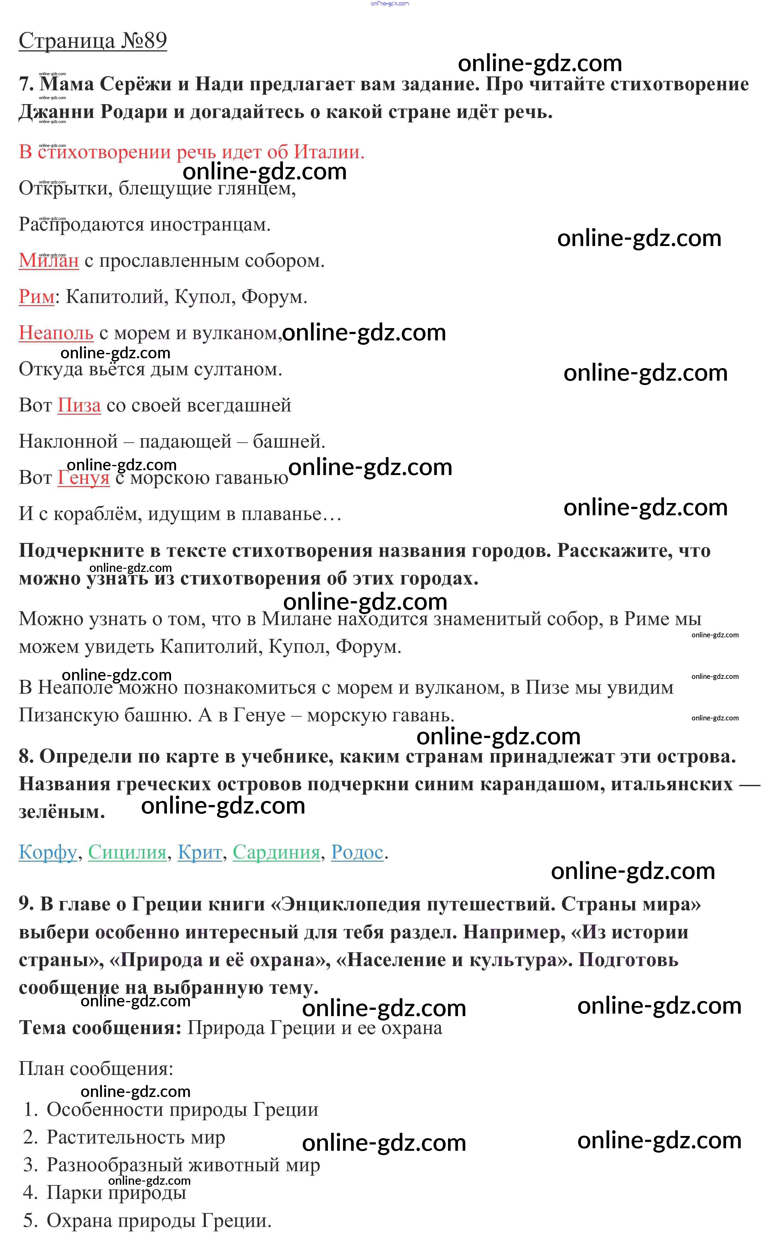 Готовые домашние задания по Окружающему миру за 3 класс Рабочая тетрадь Плешаков Школа России 2017 - Часть 2. Страницы 89