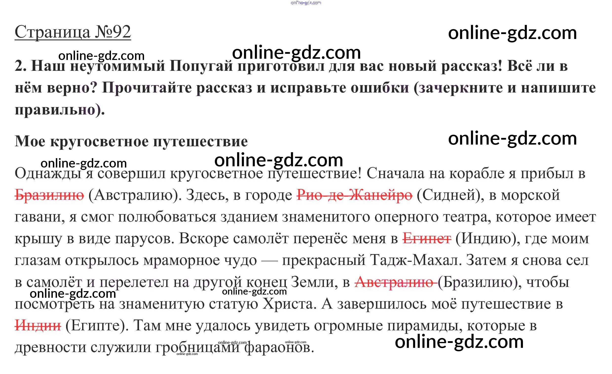 Готовые домашние задания по Окружающему миру за 3 класс Рабочая тетрадь Плешаков Школа России 2017 - Часть 2. Страницы 92