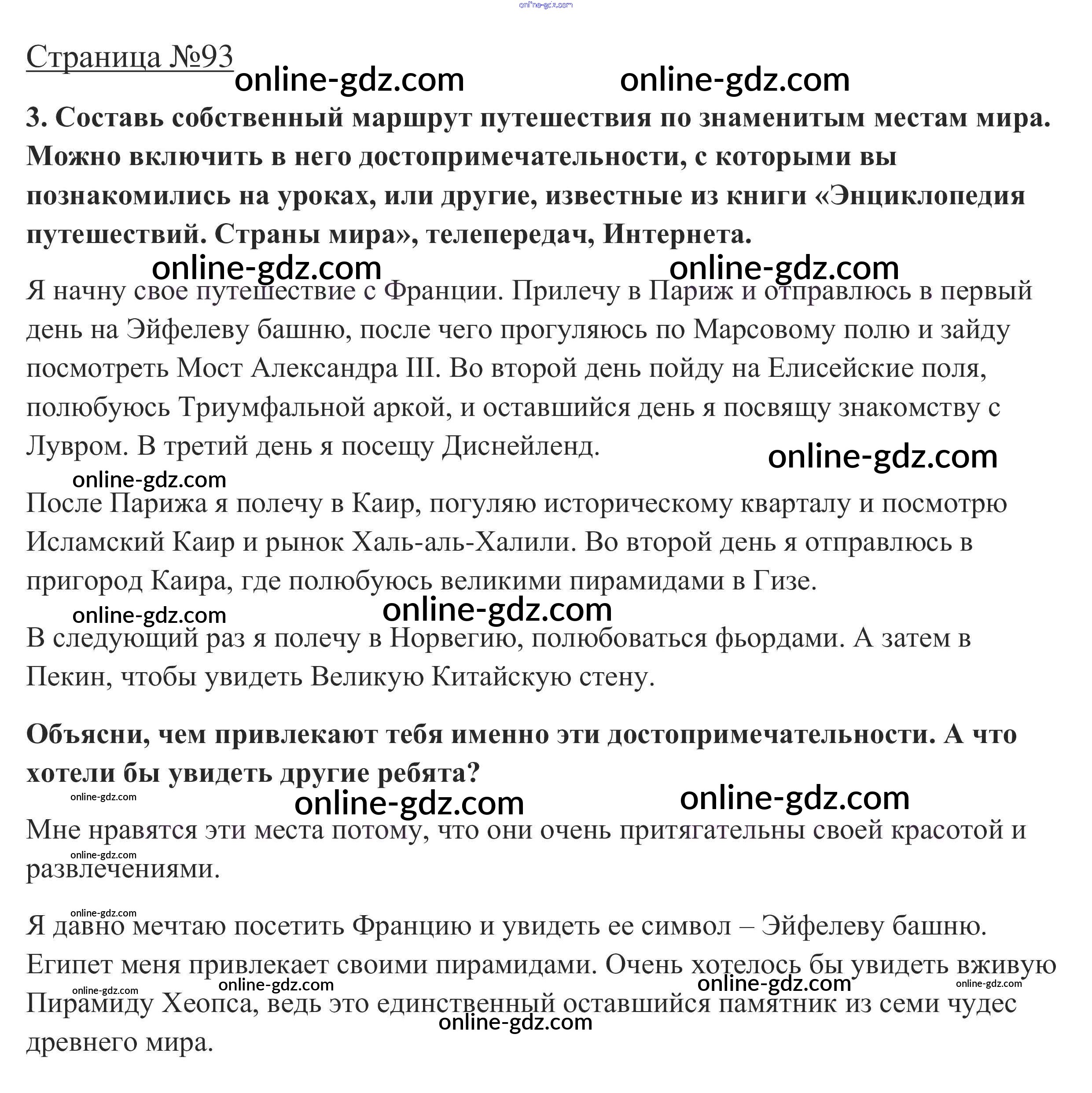 Готовые домашние задания по Окружающему миру за 3 класс Рабочая тетрадь Плешаков Школа России 2017 - Часть 2. Страницы 93