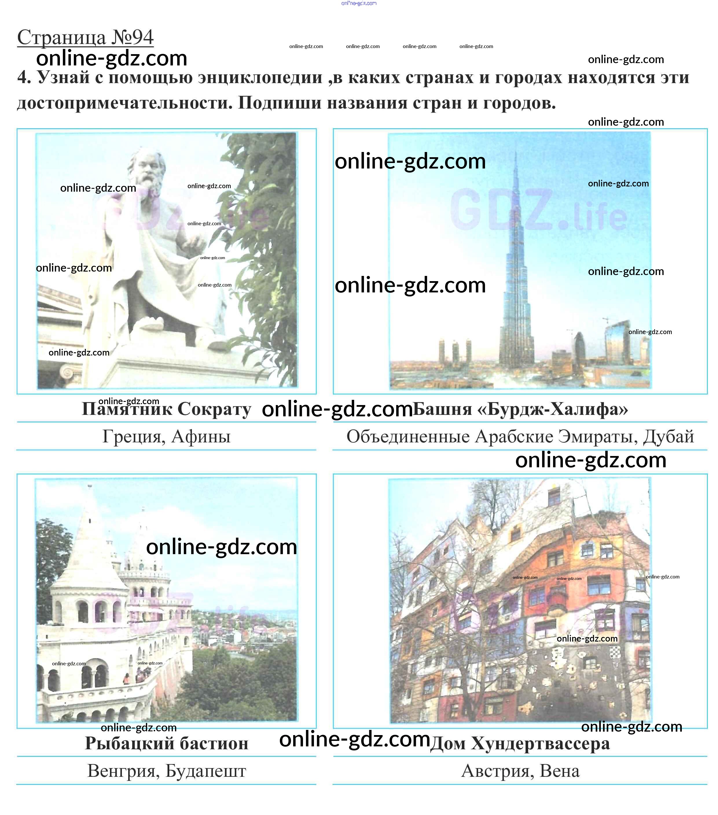 Готовые домашние задания по Окружающему миру за 3 класс Рабочая тетрадь Плешаков Школа России 2017 - Часть 2. Страницы 94