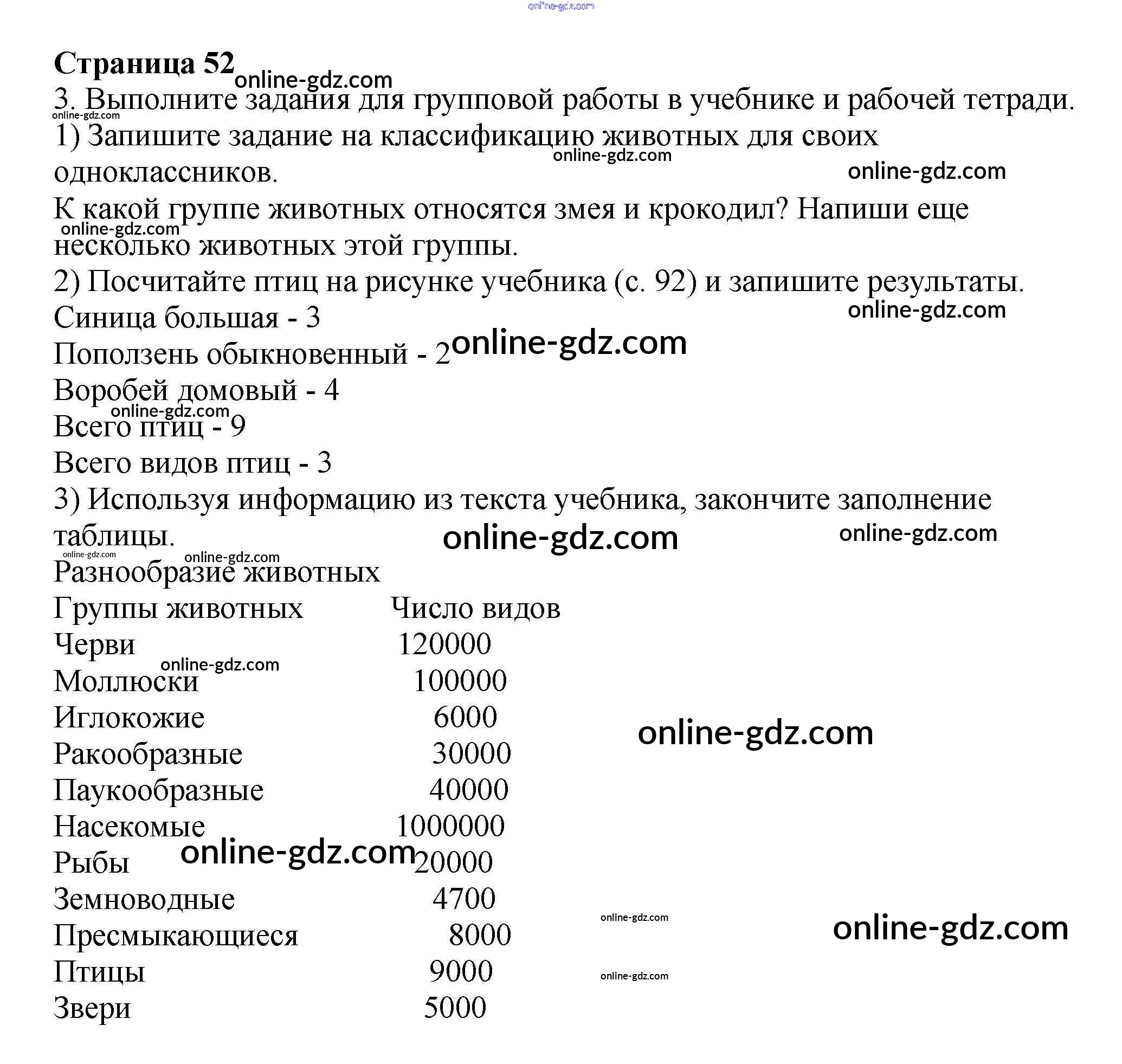 Готовые домашние задания по Окружающему миру за 3 класс Рабочая тетрадь Плешаков, Новицкая Перспектива 2013 - Часть 1. Страницы 52