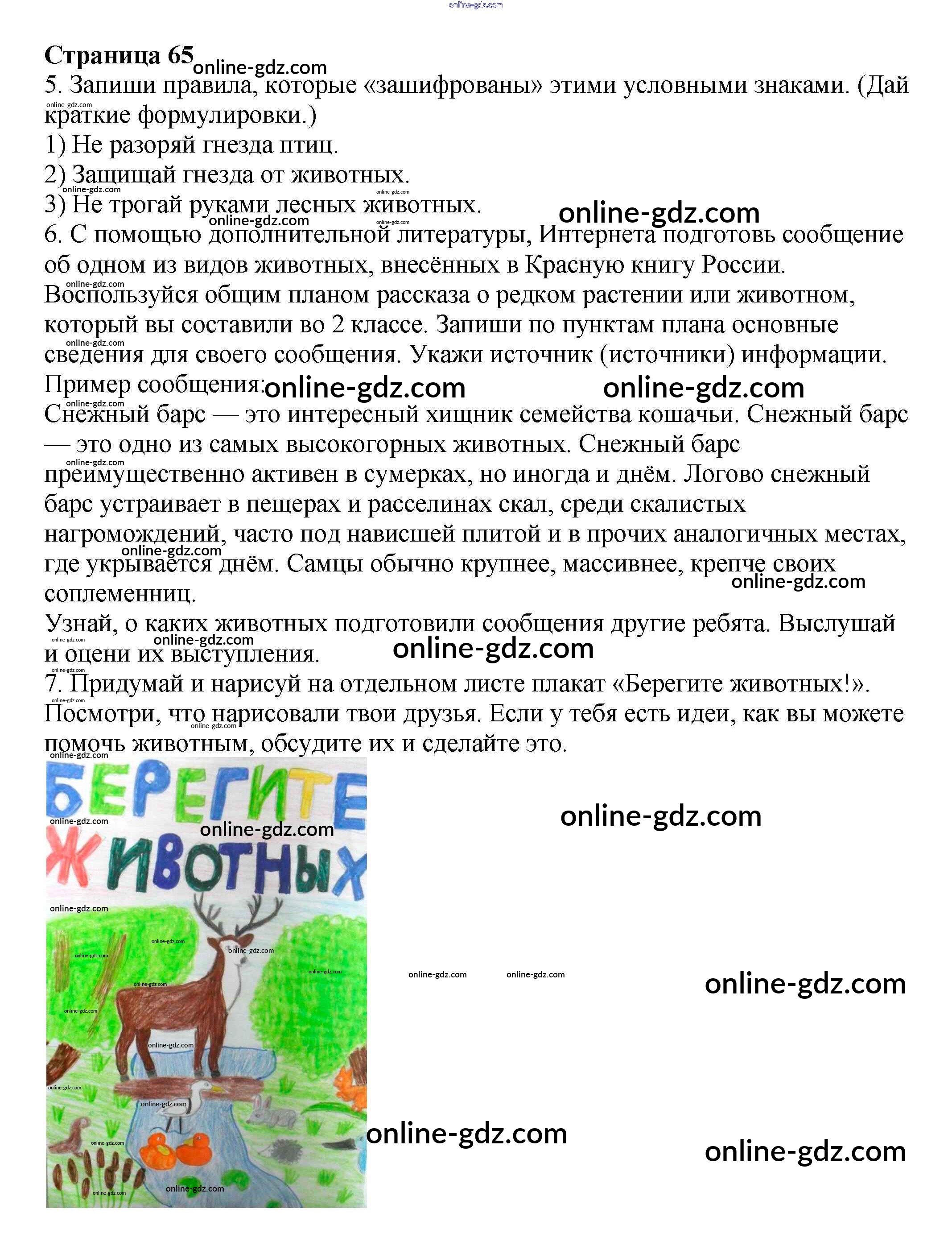 Готовые домашние задания по Окружающему миру за 3 класс Рабочая тетрадь Плешаков, Новицкая Перспектива 2013 - Часть 1. Страницы 65