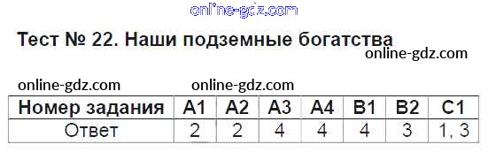 Готовые домашние задания по Окружающему миру за 4 класс Контрольно-измерительные материалы (КИМ) Тихомирова 2014 - Тесты 22