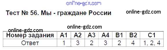 Готовые домашние задания по Окружающему миру за 4 класс Контрольно-измерительные материалы (КИМ) Тихомирова 2014 - Тесты 56