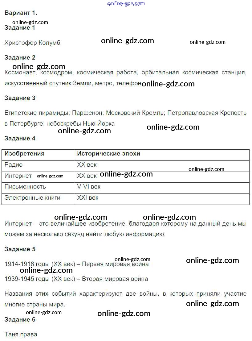 Готовые домашние задания по Окружающему миру за 4 класс Проверочные работы Плешаков, Крючкова Школа России 2018 - ПР-4. Варианты 1