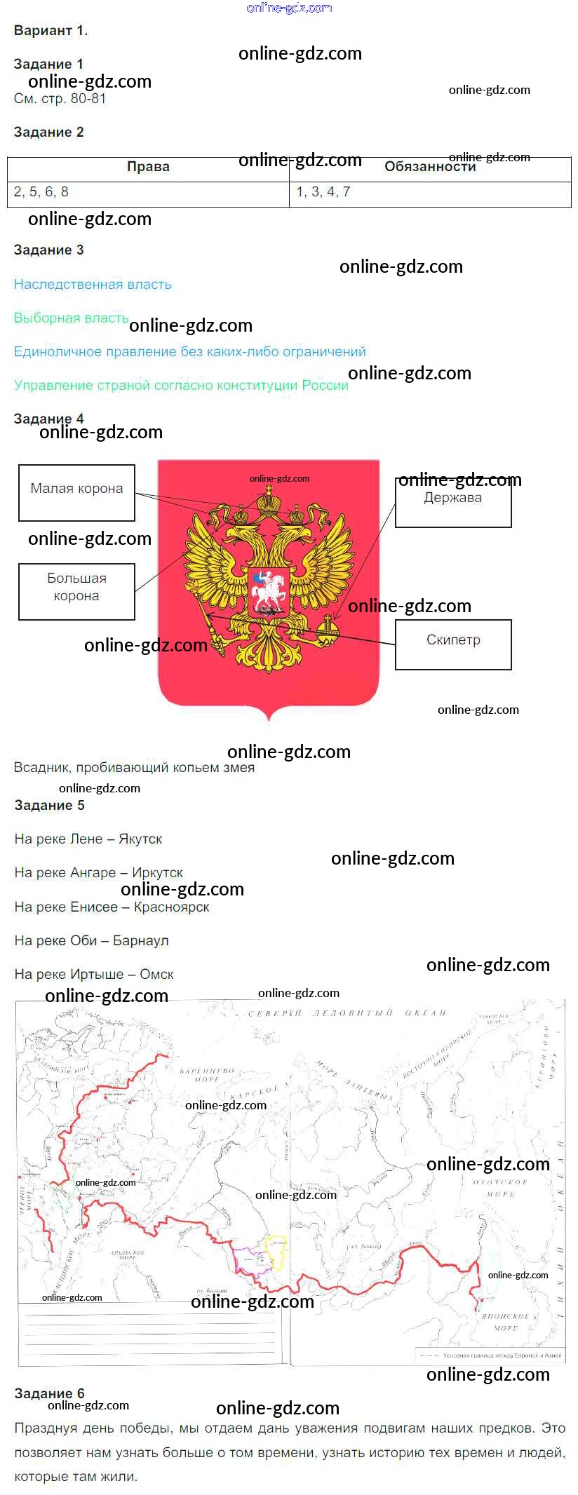 Готовые домашние задания по Окружающему миру за 4 класс Проверочные работы Плешаков, Крючкова Школа России 2018 - ПР-6. Варианты 1