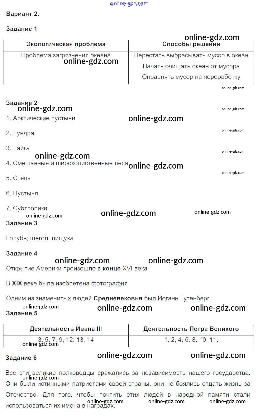 Готовые домашние задания по Окружающему миру за 4 класс Проверочные работы Плешаков, Крючкова Школа России 2018 - Итоговые проверочные работы к материалу 4 класс 2