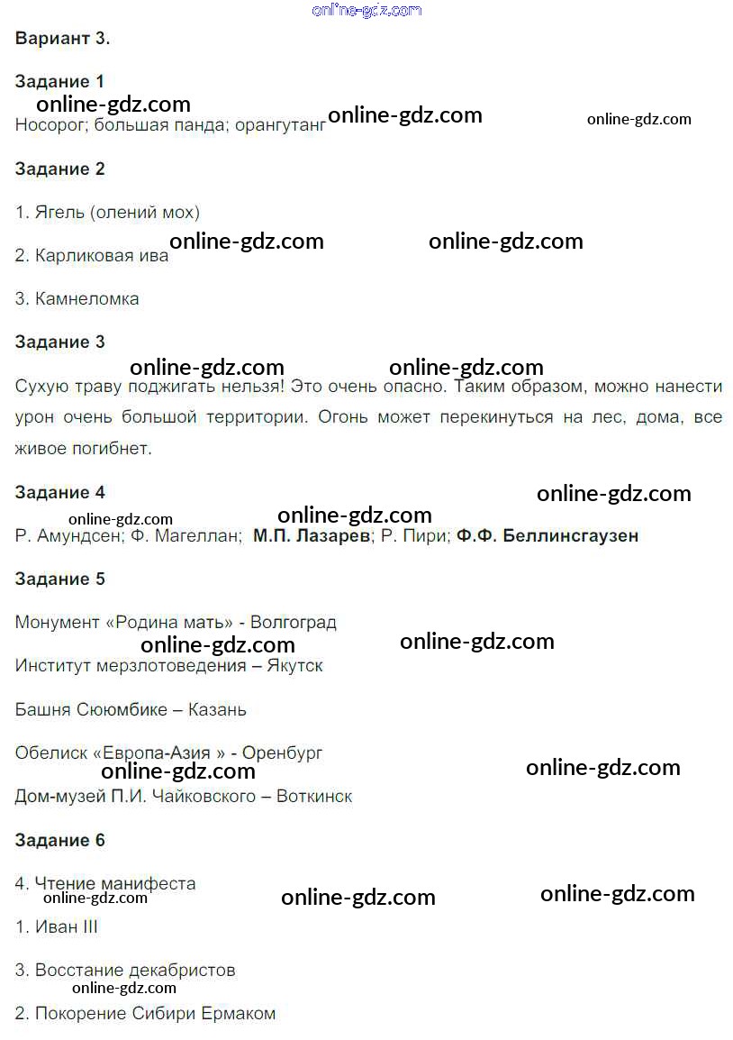 Готовые домашние задания по Окружающему миру за 4 класс Проверочные работы Плешаков, Крючкова Школа России 2018 - Итоговые проверочные работы к материалу 4 класс 3